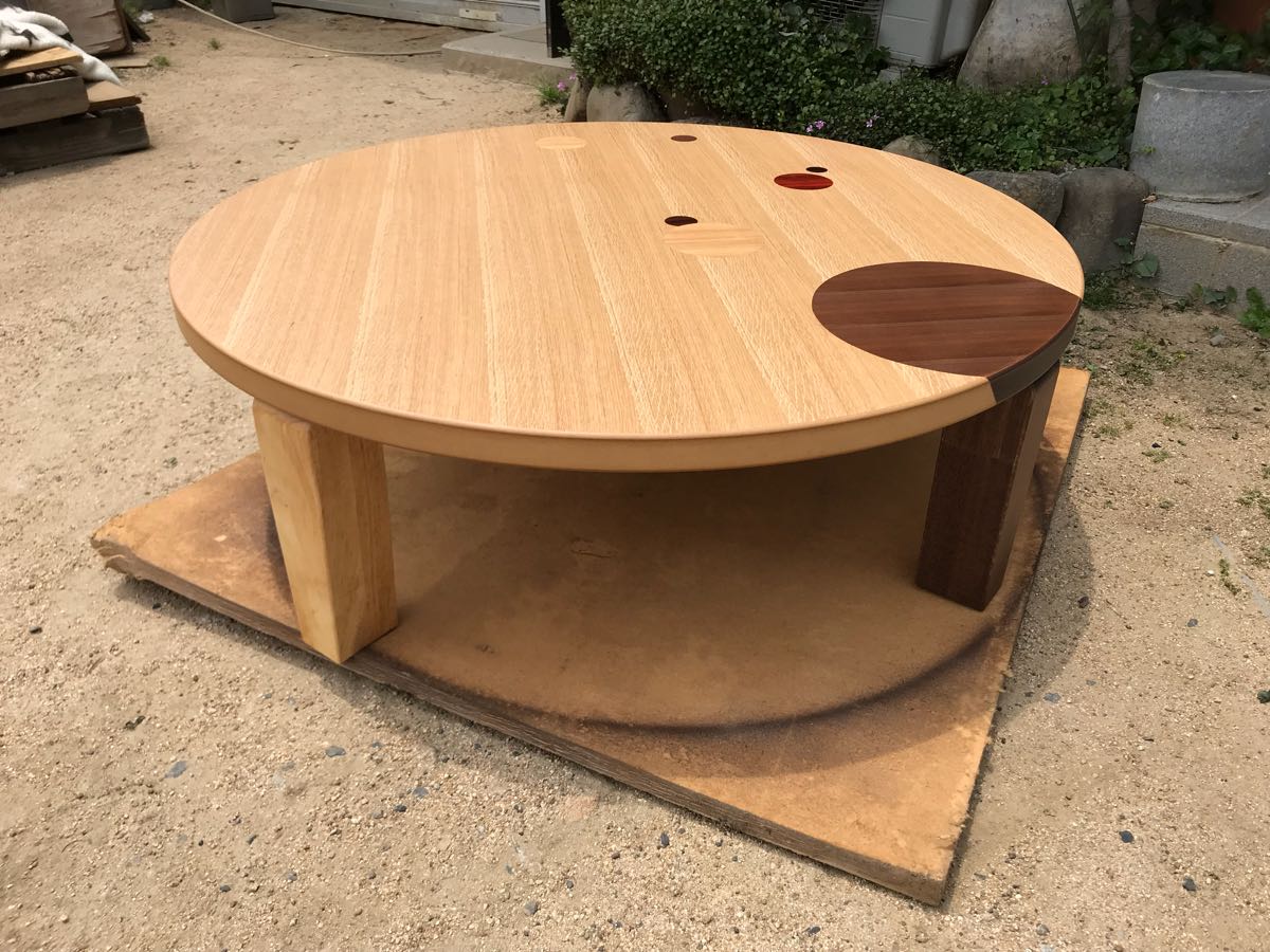 大型丸リビングテーブル折脚日本製