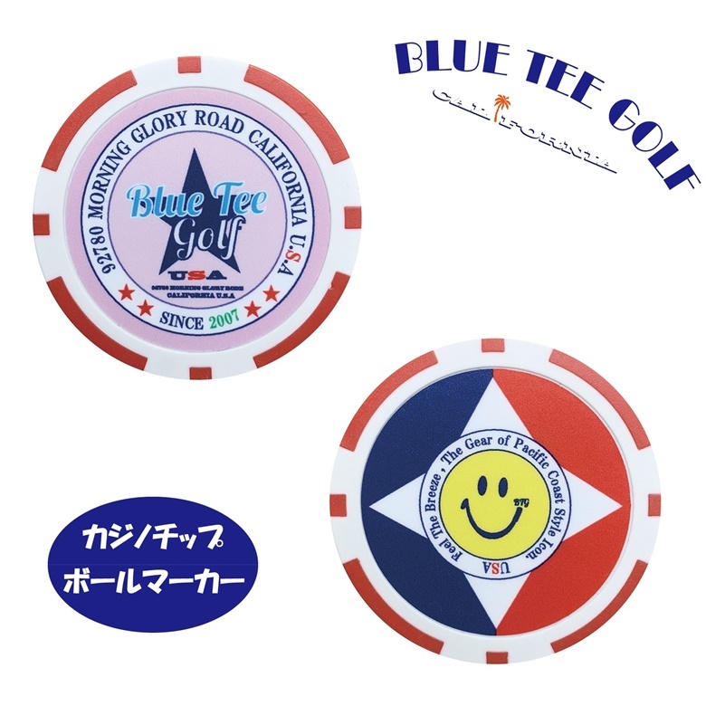 ★3RD【スター(ピンク)・スマイル(レッド)】ブルーティーゴルフ 【レッド:カジノチップ ボールマーカー】送料無料