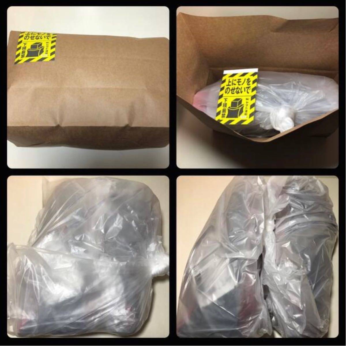 最後の写真の様に、梱包は袋に包んで紙袋に入れ下積厳禁シールを貼り完了です。
