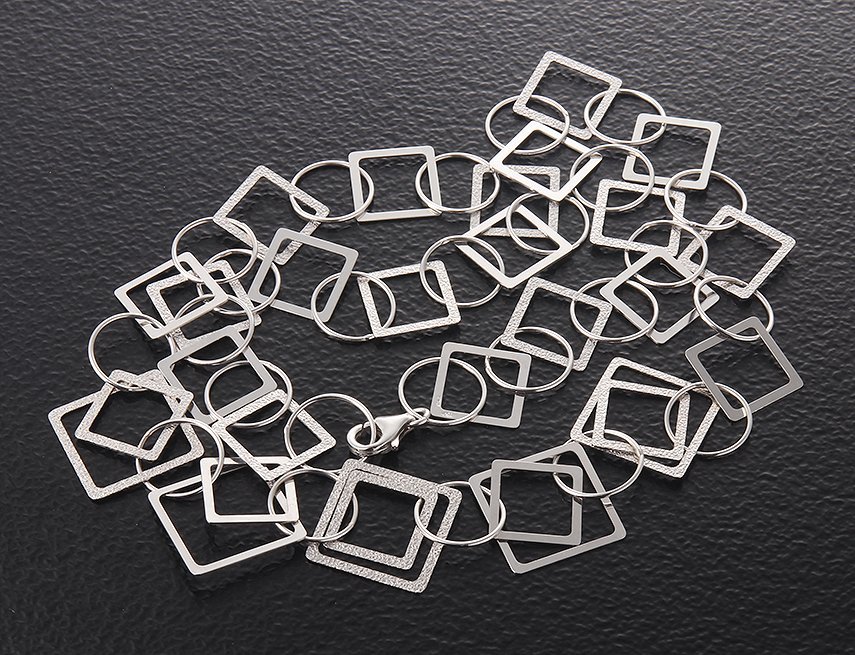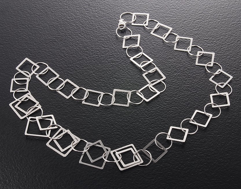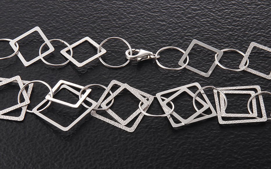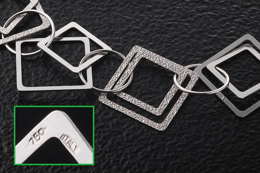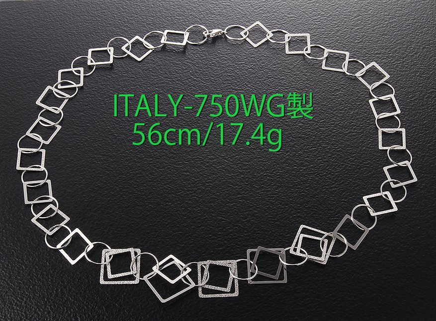 コメント | [[全ての商品に品質保証カードが付きますのでご安心ください]] イタリー製のホワイトゴールド製ネックレスです。円形と四角形を繋いだ、ちょっと面白いデザインのネックレスです。イタリーのセンスが光っています。 |