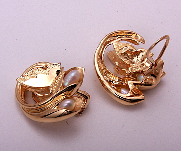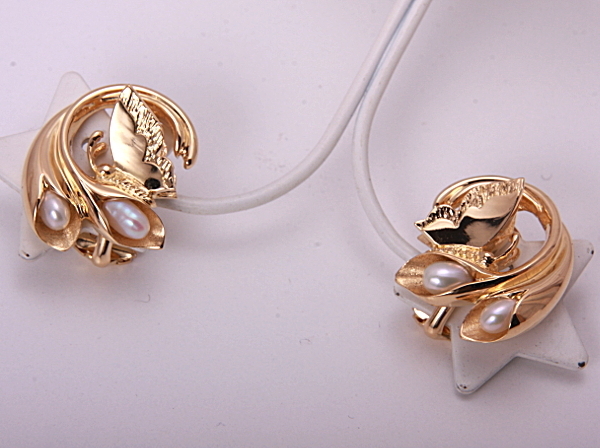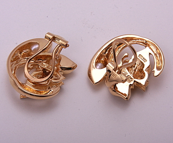 《質屋出品》ハナエモリ★k18淡水真珠のイヤリング★C-4983