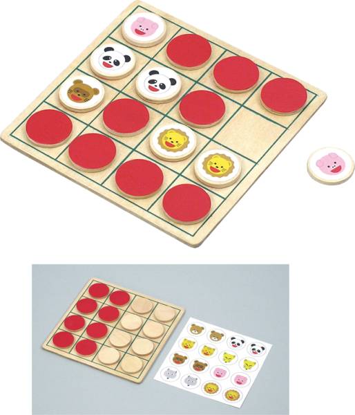 えあわせゲームです。木の素材そのままでお送りしますので、付属のシールを貼って使っていただいていいですし、他のシールや画像も張って使っていただけます。オリジナルの絵合わせもできます。