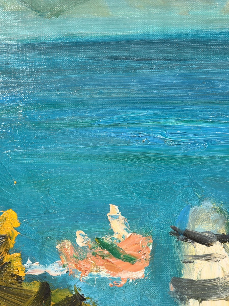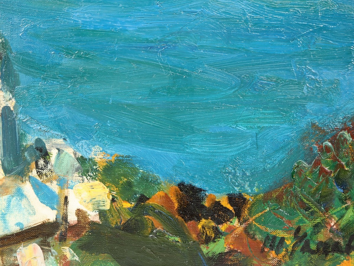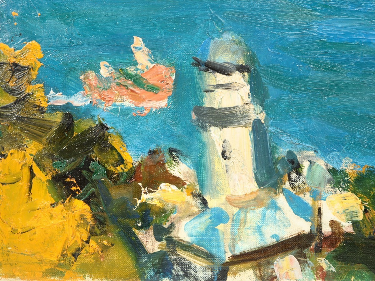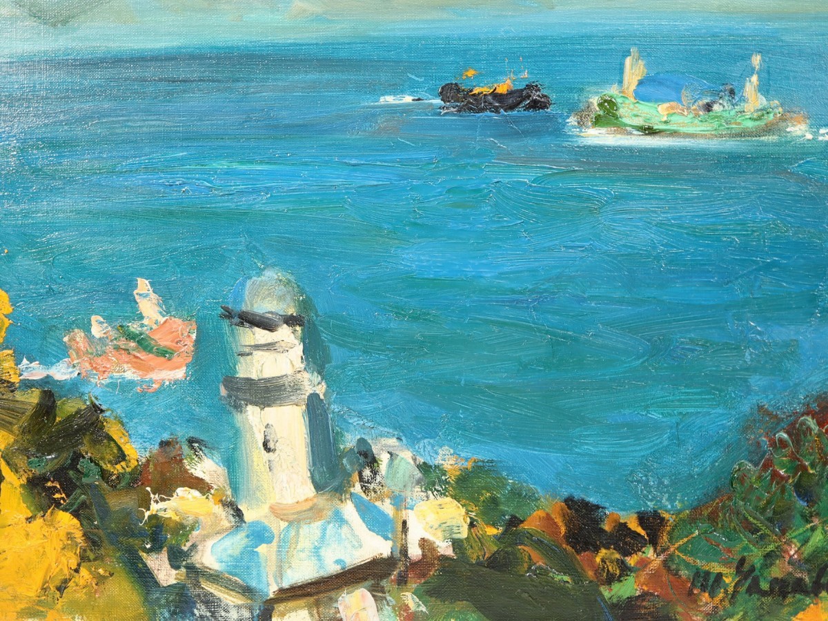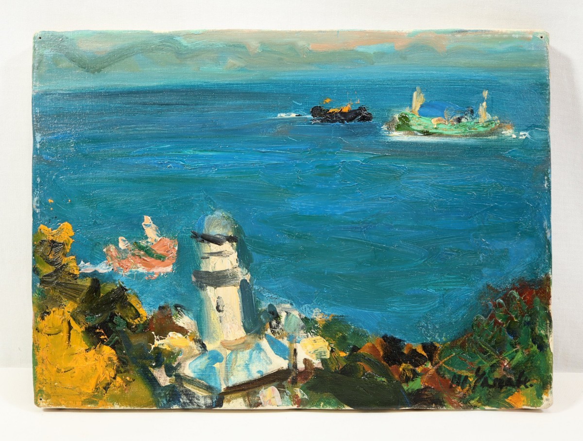 真作 田辺三重松 油彩「観音埼燈台」画寸 F4 北海道出身 行動美術協会創立会員 安井曾太郎に師事 浦賀水道が広がるダイナミックな構成 6613