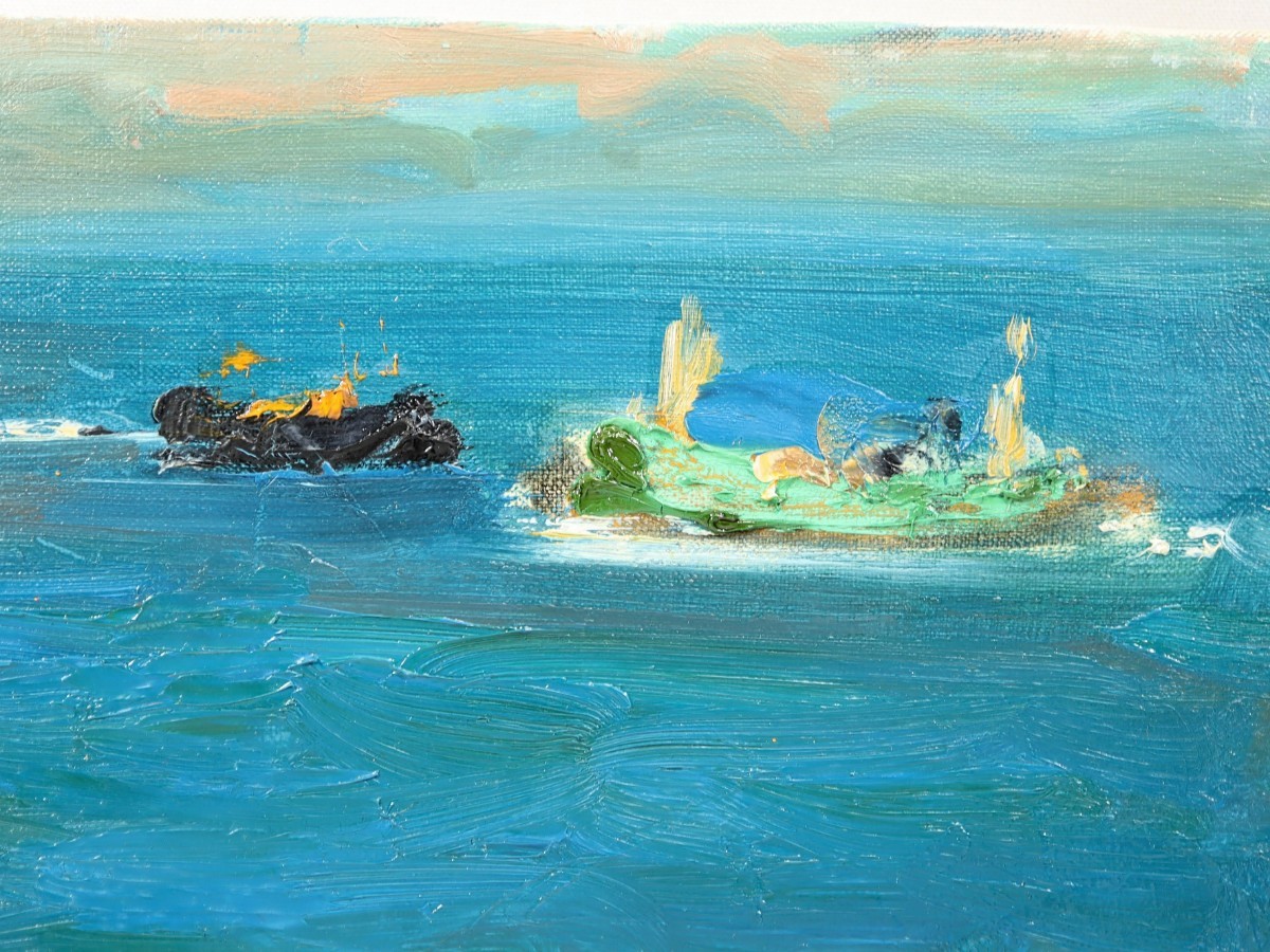 遠望には薄らと見える対岸の房総半島富津岬が描かれた
