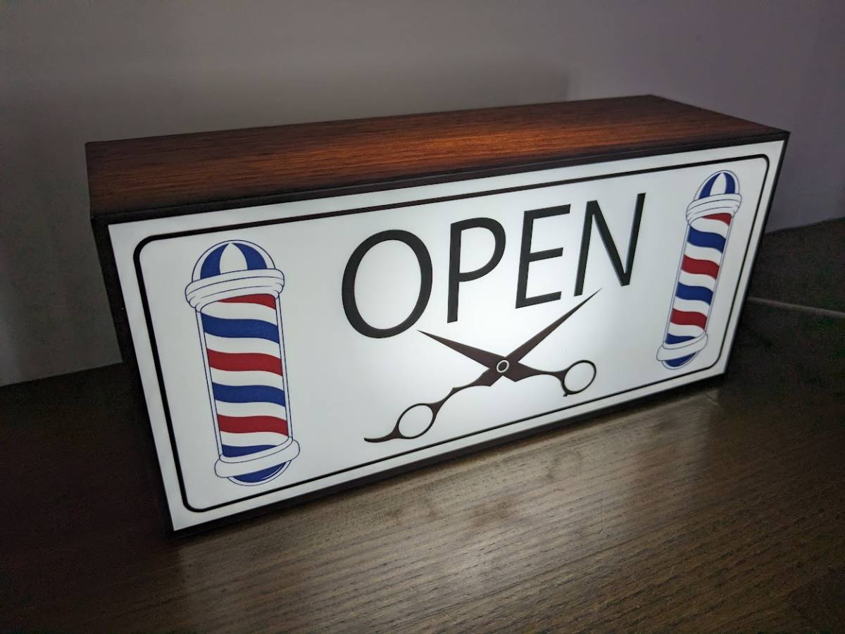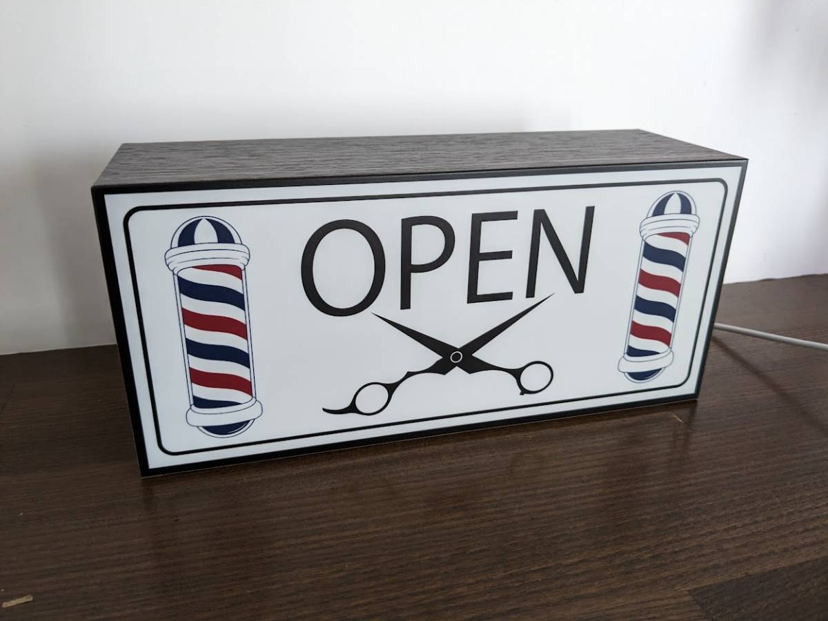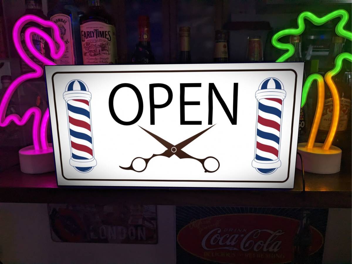 【Lサイズ】バーバー ヘアーサロン 理容室 床屋 オープン クローズ 両面 サイン ランプ 看板 置物 雑貨 ライトBOX 電飾看板 電光看板