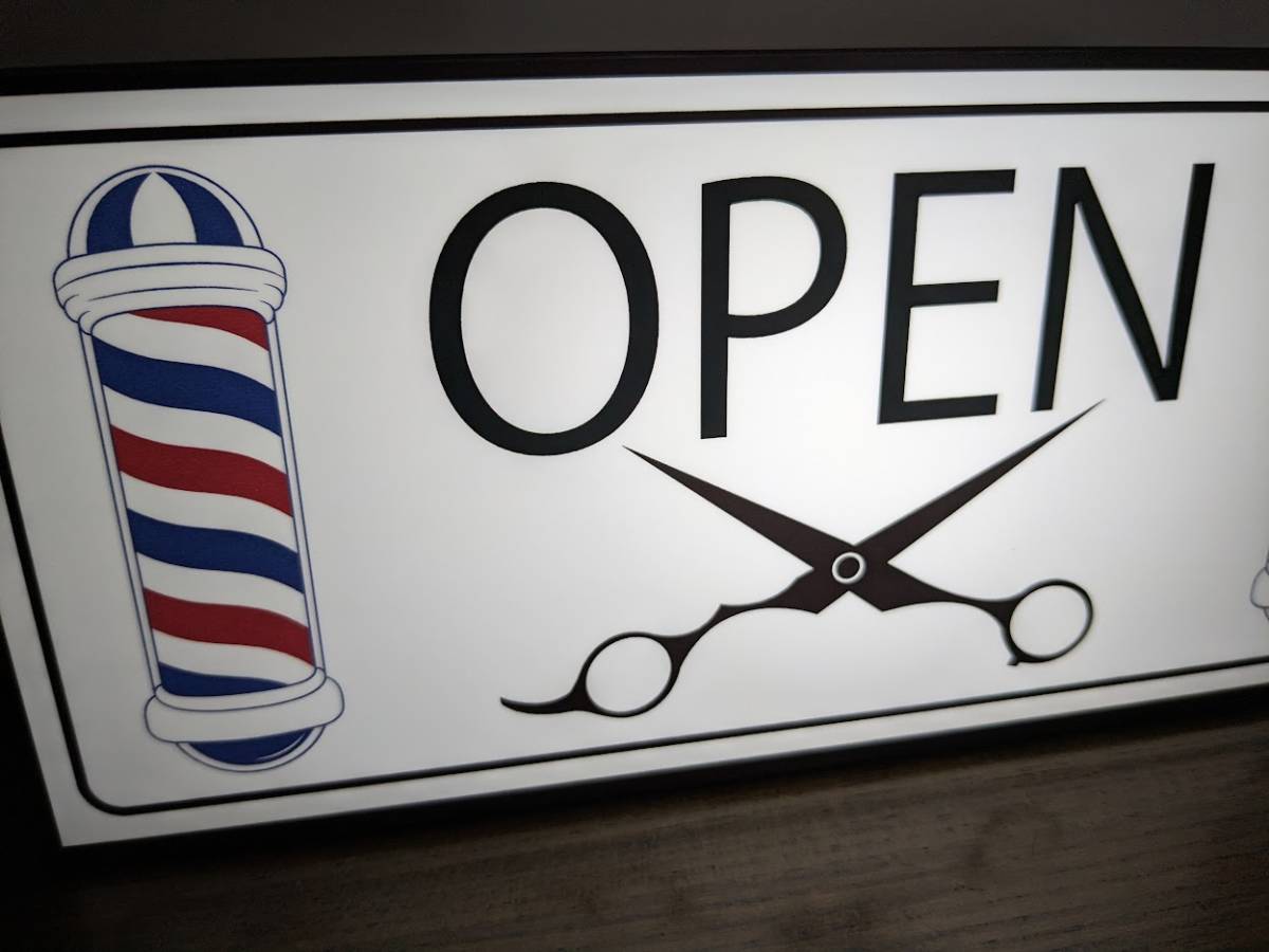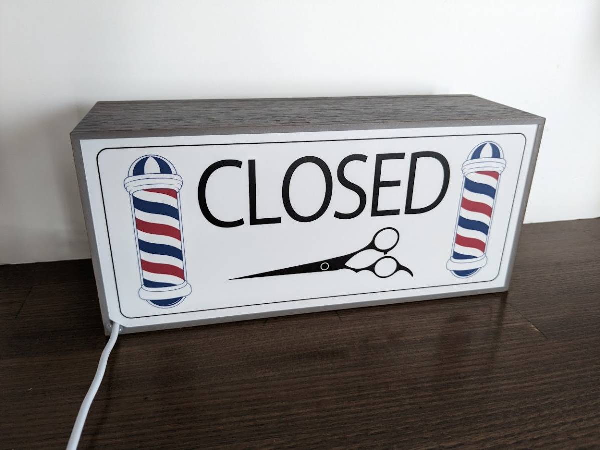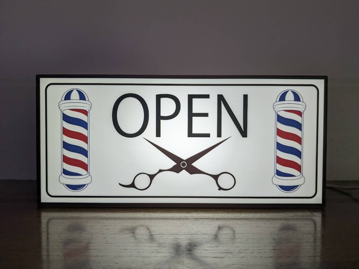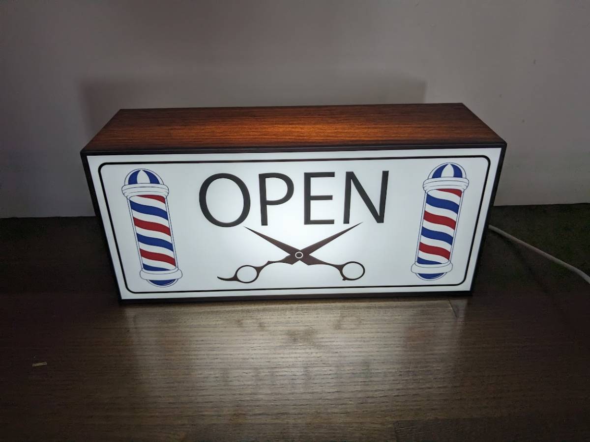 【Lサイズ】バーバー ヘアーサロン 理容室 床屋 オープン クローズ 両面 サイン ランプ 看板 置物 雑貨 ライトBOX 電飾看板 電光看板