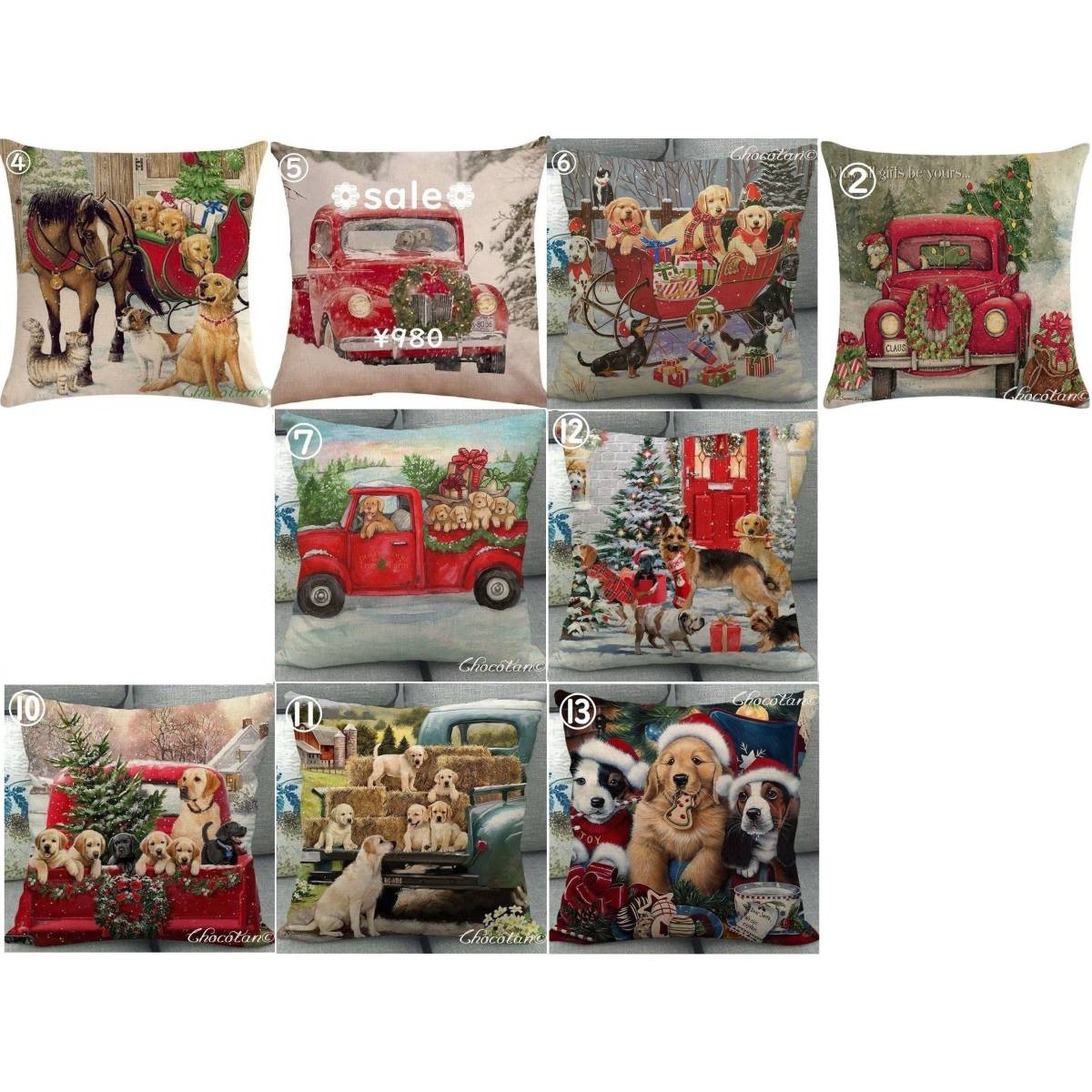 【送料無料】Xmas ⑫ 7犬種 クッションカバー【新品】