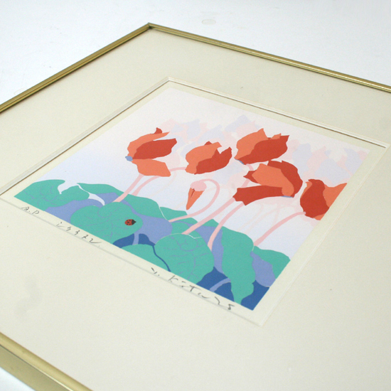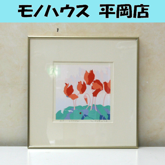 真作 額装シルクスクリーン 吉岡浩太郎 シクラメン AP版 直筆サイン入り ガラスにカケ・ヒビあり 現状品 札幌市 清田区 平岡