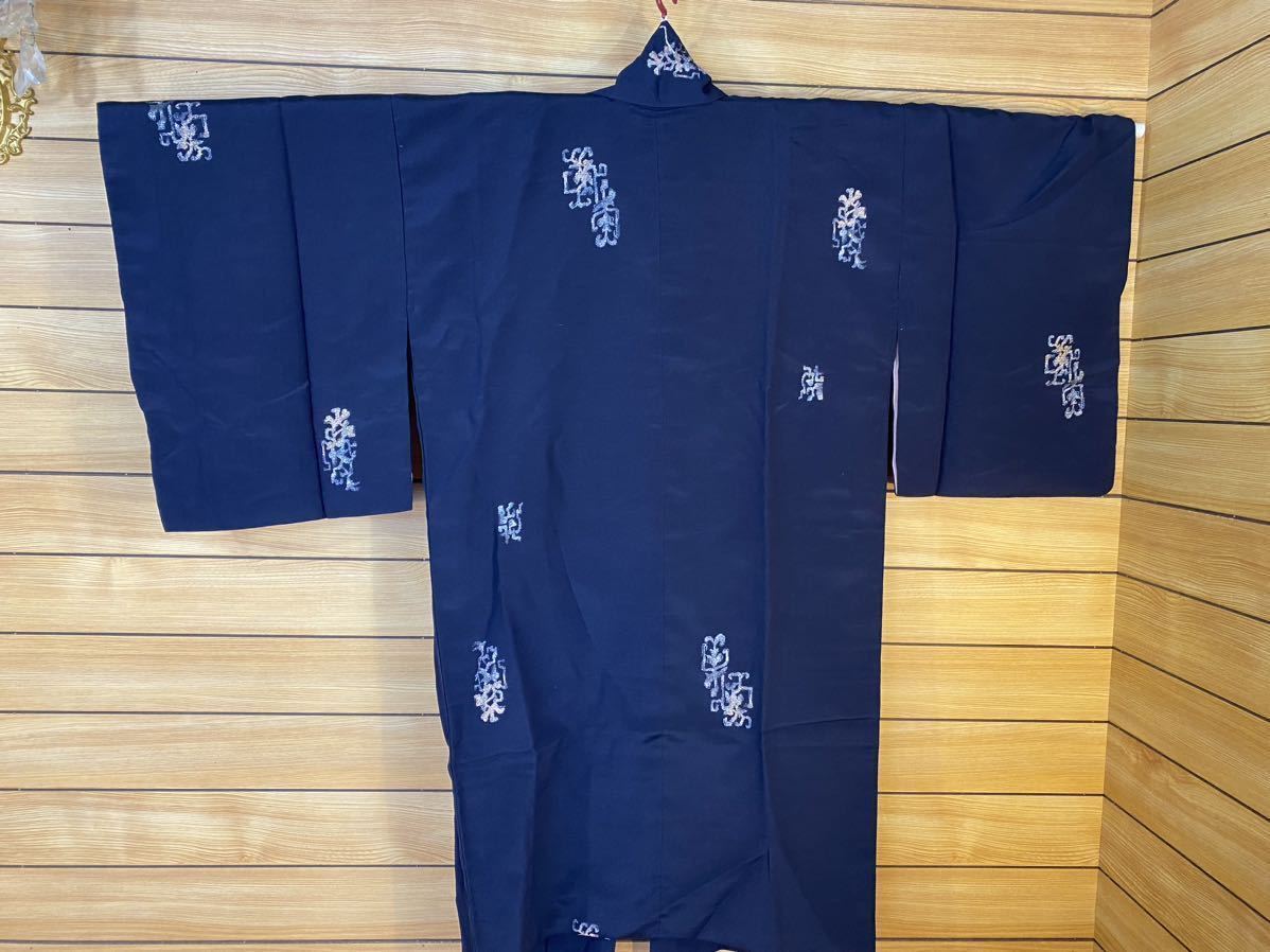 袷 道中コート 身丈100 シルバーラメ入り 紺