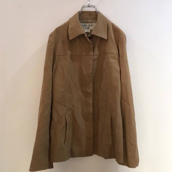 商品: NATURAL BEAUTY BASIC/ナチュラルビューティーベーシック 長袖 レディース スウェードシャツ ベージュ 茶 Mサイズ
