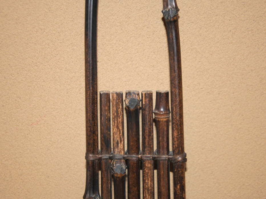 竹製 すいはつ 垂撥 垂発です。 掛花生や、短冊をかけたり、柱隠しとして歌などを書く道具です。 多少の経年変化は見られますが状態は良好です。 ※予めご了承の上ご入札お待ちしております。 ※撮影の際に生じた写り込みなどがございます。 ご理解の程よろしくお願い致します。 |