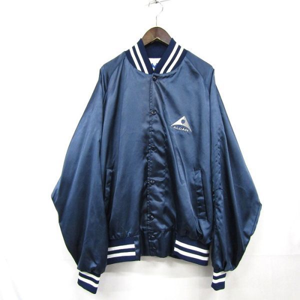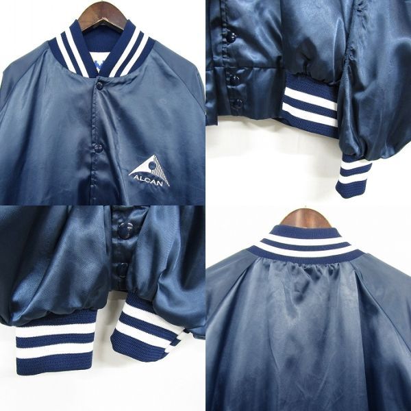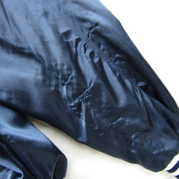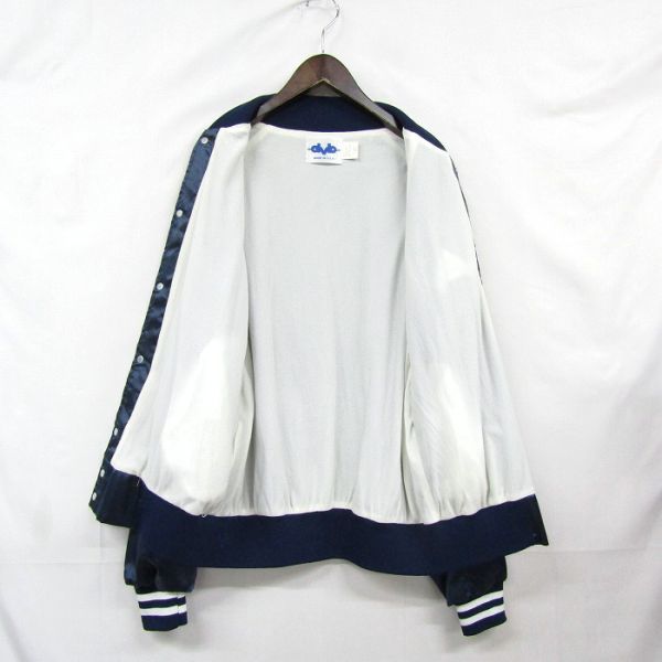 USA製 サイズ L dvd スタジアム ジャンパー 企業系 スタジャン ナイロン ジャケット 裏地有 ネイビー 古着 ビンテージ 3J1707