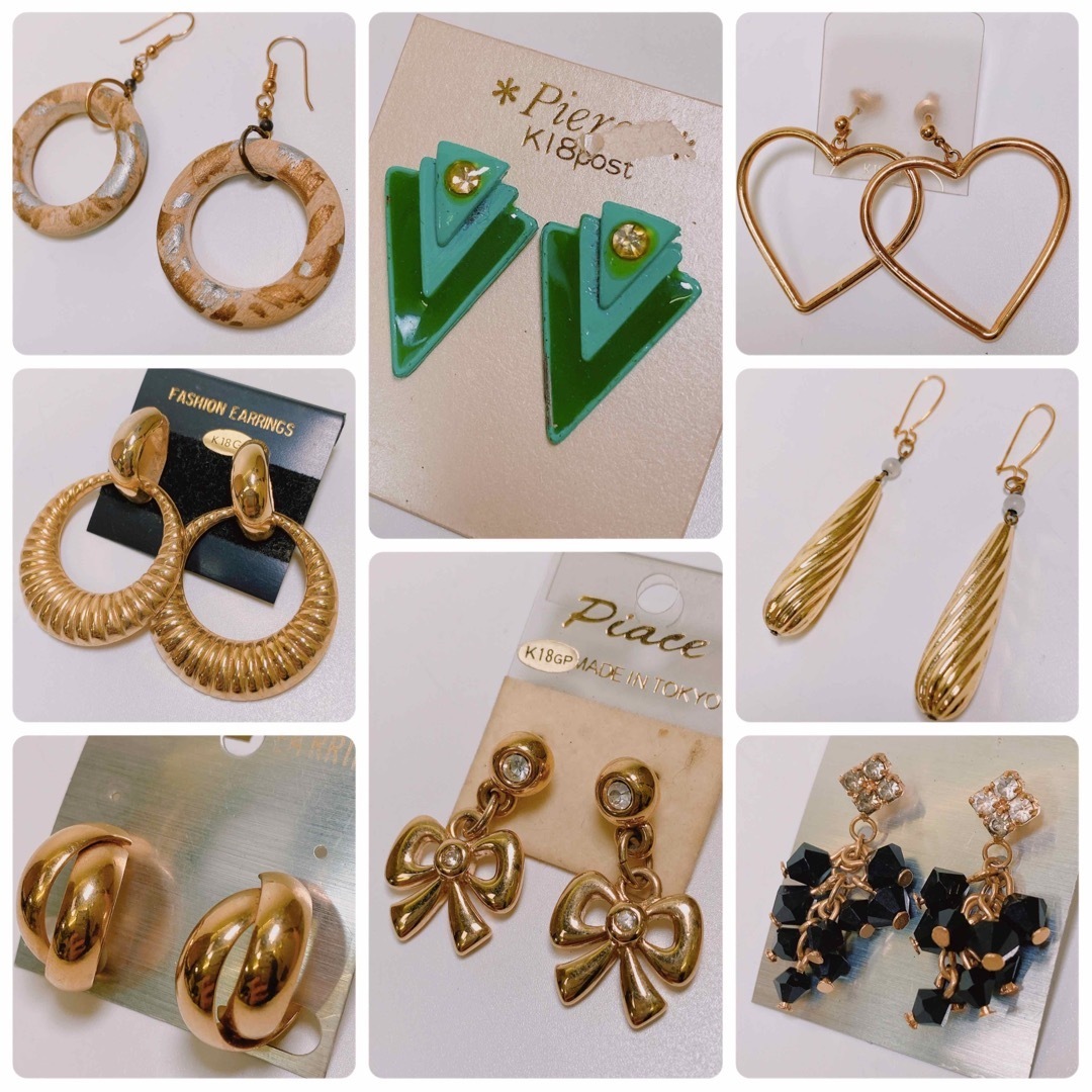 ピアス8点セットです。定価1.2万相当のお品をおまとめでお安くお譲りします♪(台紙に K18 GP 表記あるものもございます。)