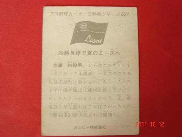 *カルビー74年プロ野球カード NO.521(加藤/太平洋) *