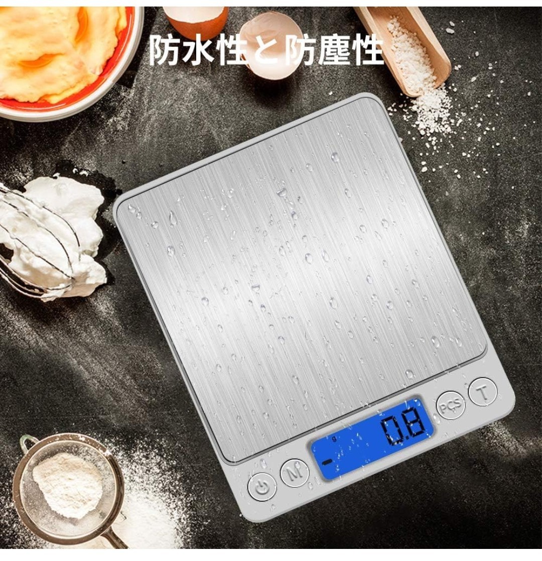 キッチンスケール はかり デジタル 精密電子はかり [最新] 計量器 電子天秤 0.1g単位 キッチン クッキングスケール コンパクト 計量可能 風袋引き機能 オートオフ機能 個数計算機能付き 多用途 超小型 (シルバー)