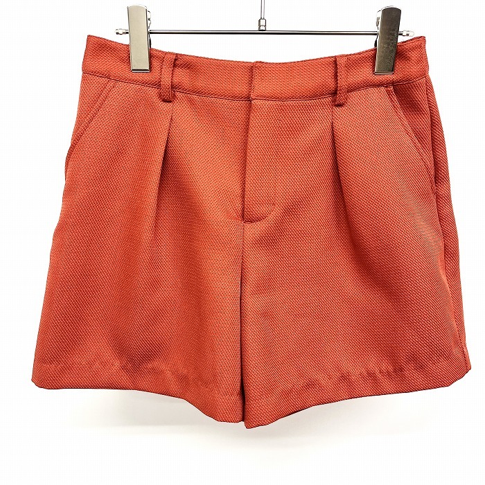 | 商品タイトル | グローブ grove ワイドショーツ ショートパンツ 無地 1タック 裏地無し ジップアップ ポリ100% M 茶系 オレンジブラウン系 レディース |