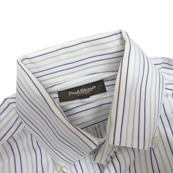 s■ポールスチュアート/Paul Stuart ストライプ柄 長袖シャツ/ワイシャツ【L】白/MENS/93【中古】