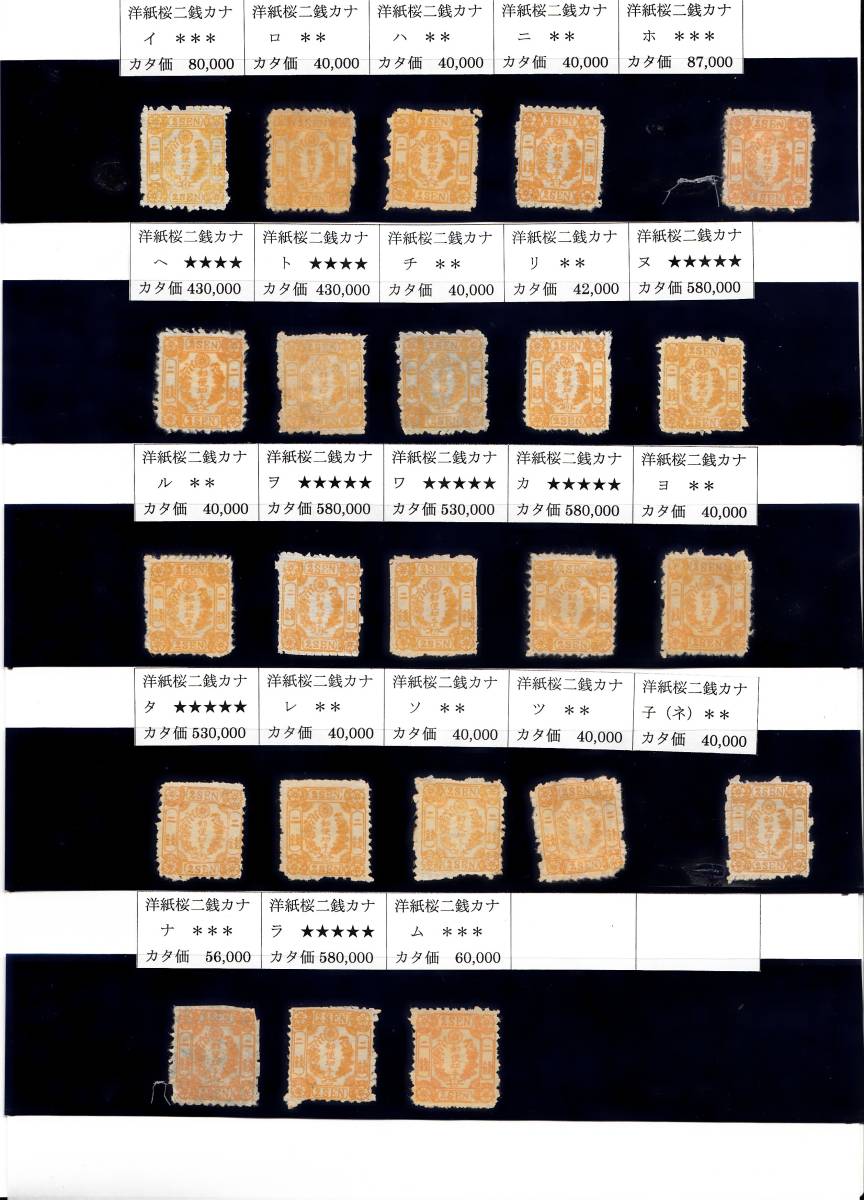 洋紙2銭は未使用品が極端に少なく中でも ヌ・ヲ・ワ・カ・タ・ラは入手困難品といわれております