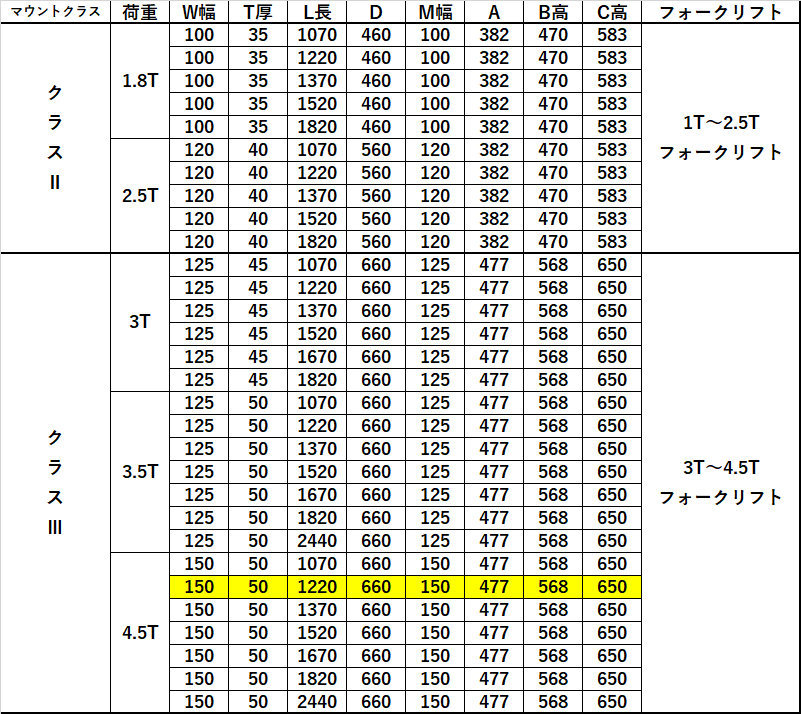 ※お取り付けに関しては、フォークリフト及びフォークの仕様、寸法をよくご確認ください。