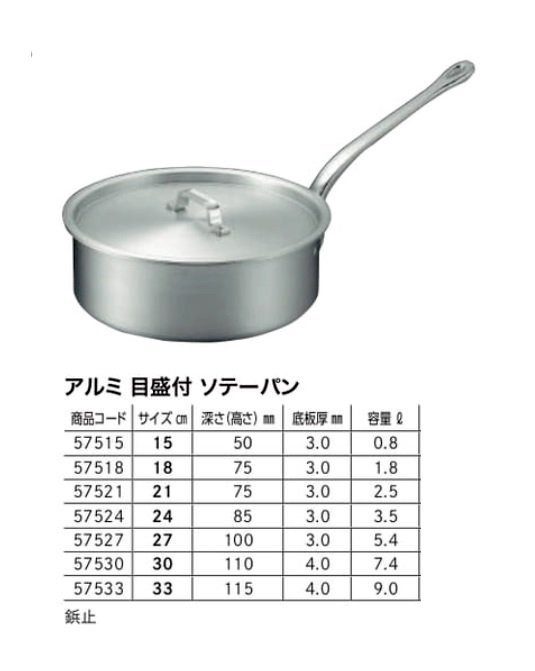 ☆仔犬印業務用アルミ目盛付ソテーパン30cm(底板厚4mm)日本製新品