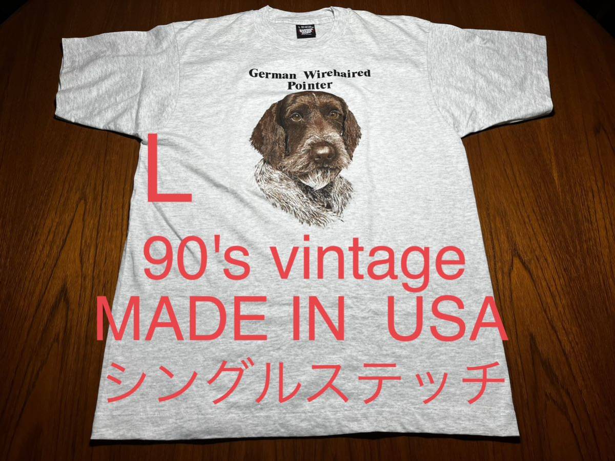 人気の犬のプリントTシャツになります。コレクターもいる人気シリーズで様々な犬種が存在します。90's フルーツベストボディーのアメリカ製シングルステッチになります。デッドストックを1ウォッシュしています、もちろん未使用です。サイズLで肩幅45cm身幅50cm着丈67cmになります。