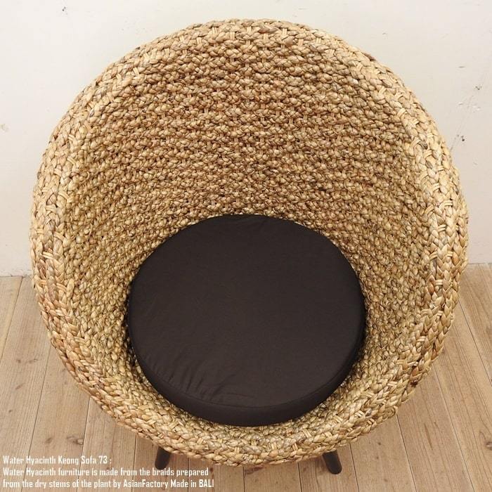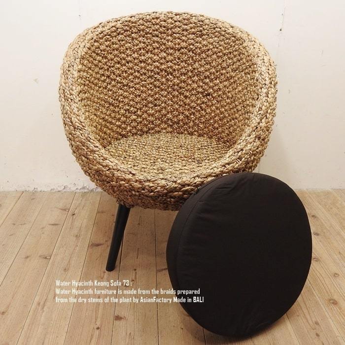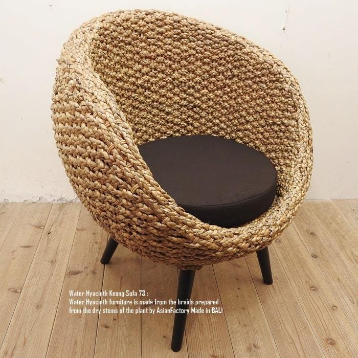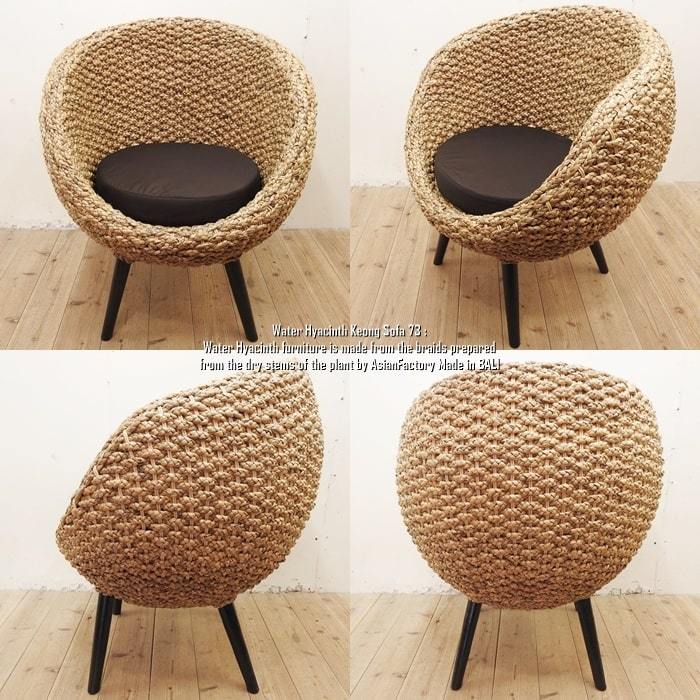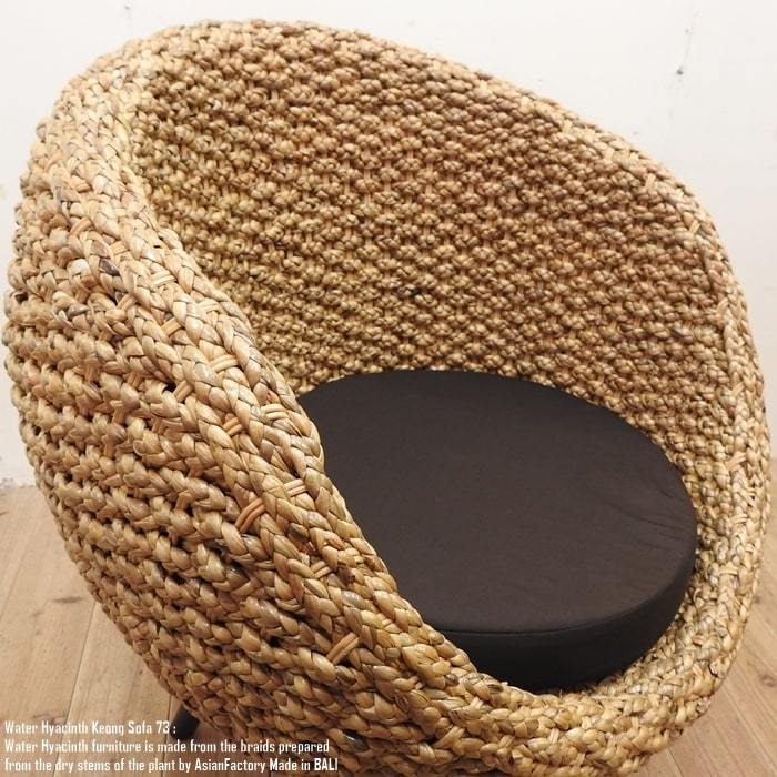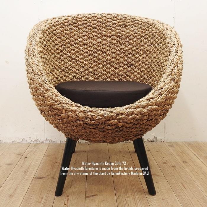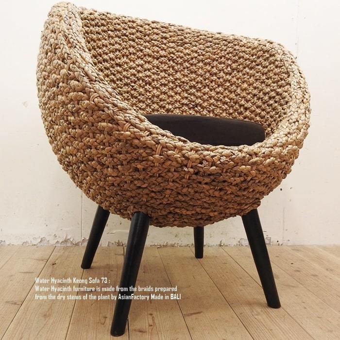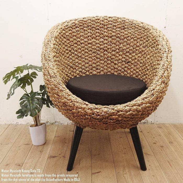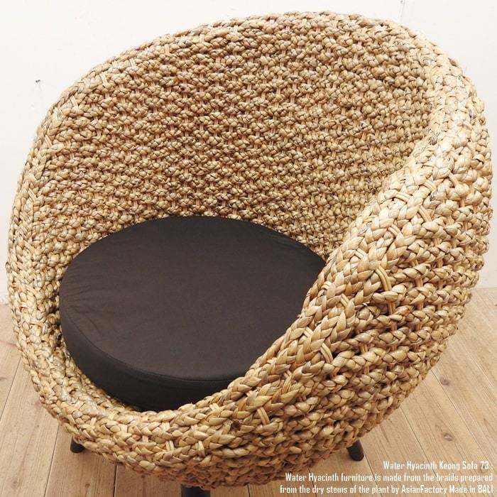 ウォーターヒヤシンスと呼ばれる水草をインドネシアの職人が1点1点編み込んだシングルソファです。