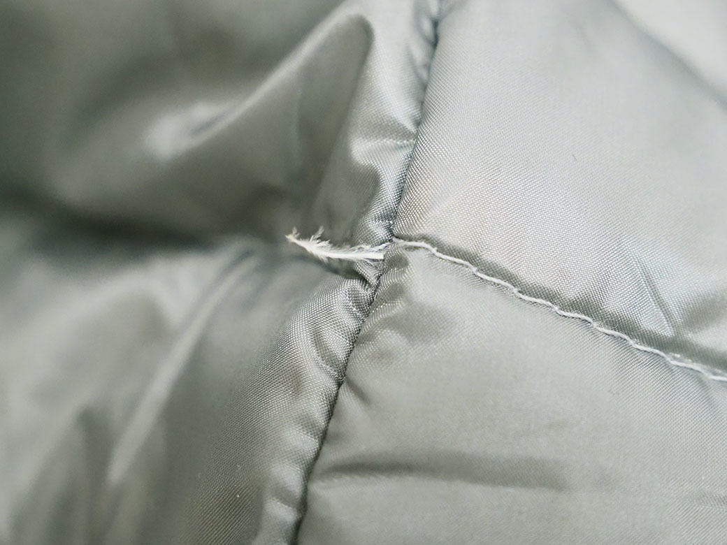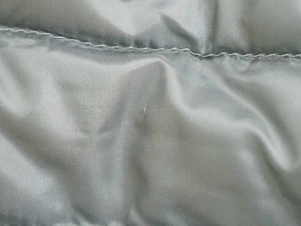| 外側 | シワ 縫い糸目飛び ところどころに繊維の飛び出し ところどころに糸の飛び出し 毛羽飛び出し 小さな汚れ 小さな線キズ |