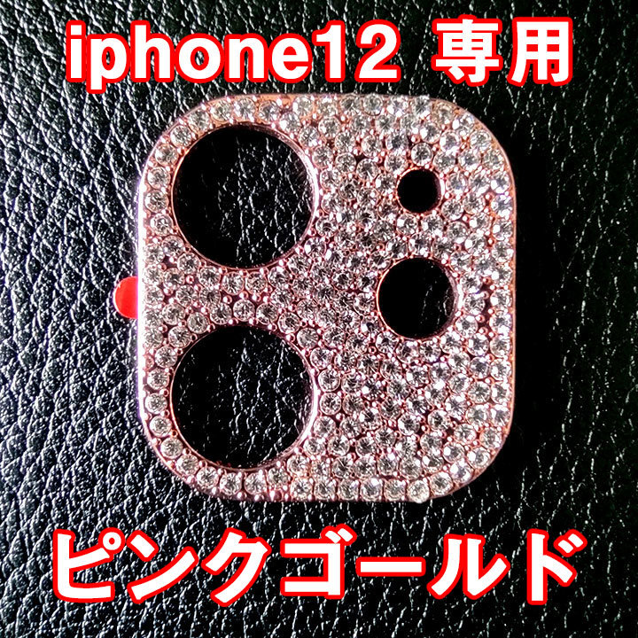 iPhone12 専用 カメラレンズカバー ピンクゴールド ラインストーン キラキラ お洒落