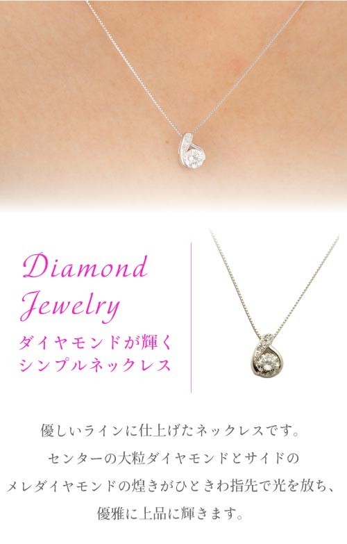 商品コード 2017101504 発送は2週間ほどです優しいラインに仕上げたシンプル・ダイヤモンドネックレスですセンターの大粒ダイヤモンドとサイドのメレダイヤモンドの煌きがひときわ指先で光を放ち優雅に上品に輝きます■商品詳細材質 プラチナ900(品質を保証するpt900の刻印) 宝石名 天然ダイヤモンド中石 1石(トータル0.30ct)脇石 3石(トータル0.02ct)大きさ 最大幅 縦 約9.0mm 横約7.0mm 高さ約4.0 mmチェーン プラチナ850ベネチアン0.7mm(アジャスター管付) 40cm備考 刻印 金種 ;石目N-hinanoyaお誕生日 プレゼント 結婚記念日 クリスマス プレゼント ホワイトデー 結婚式 卒業式 入学式 新生活 母の日 成人のお祝い 彼女 恋人 女性への贈り物 ギフト対応 送料無料普段使い 日常使い デイリー カジュアル アクセサリー レディース 自分へのご褒美 浴衣に似合う ボーナスセール 夏 ポイント消化 安い