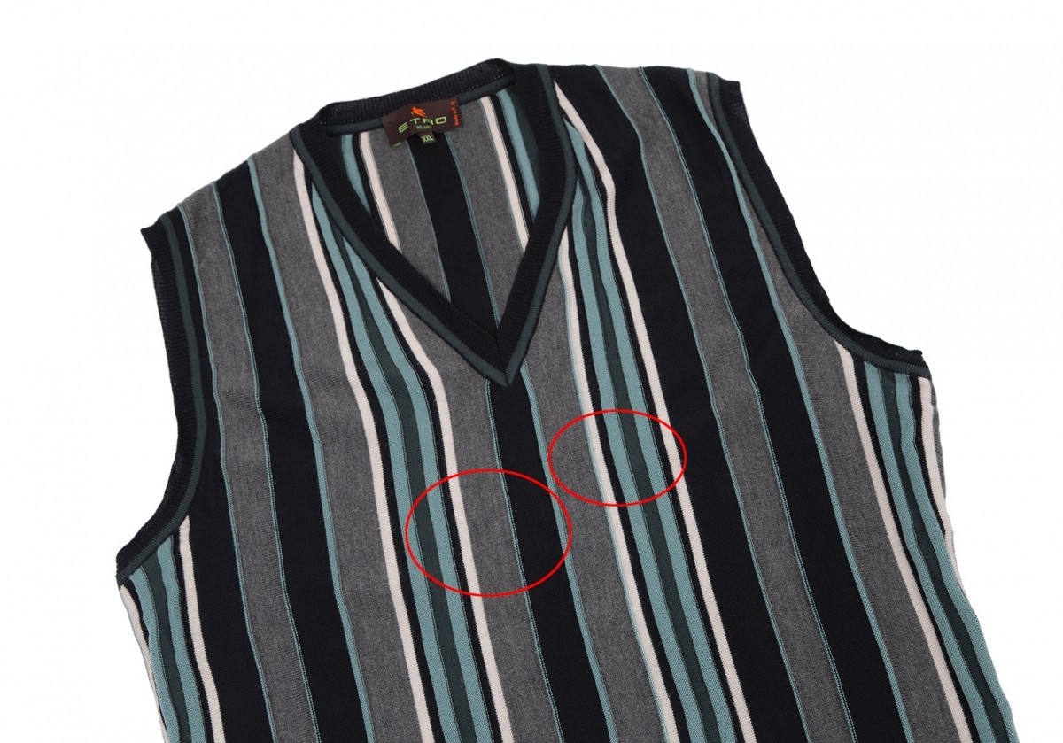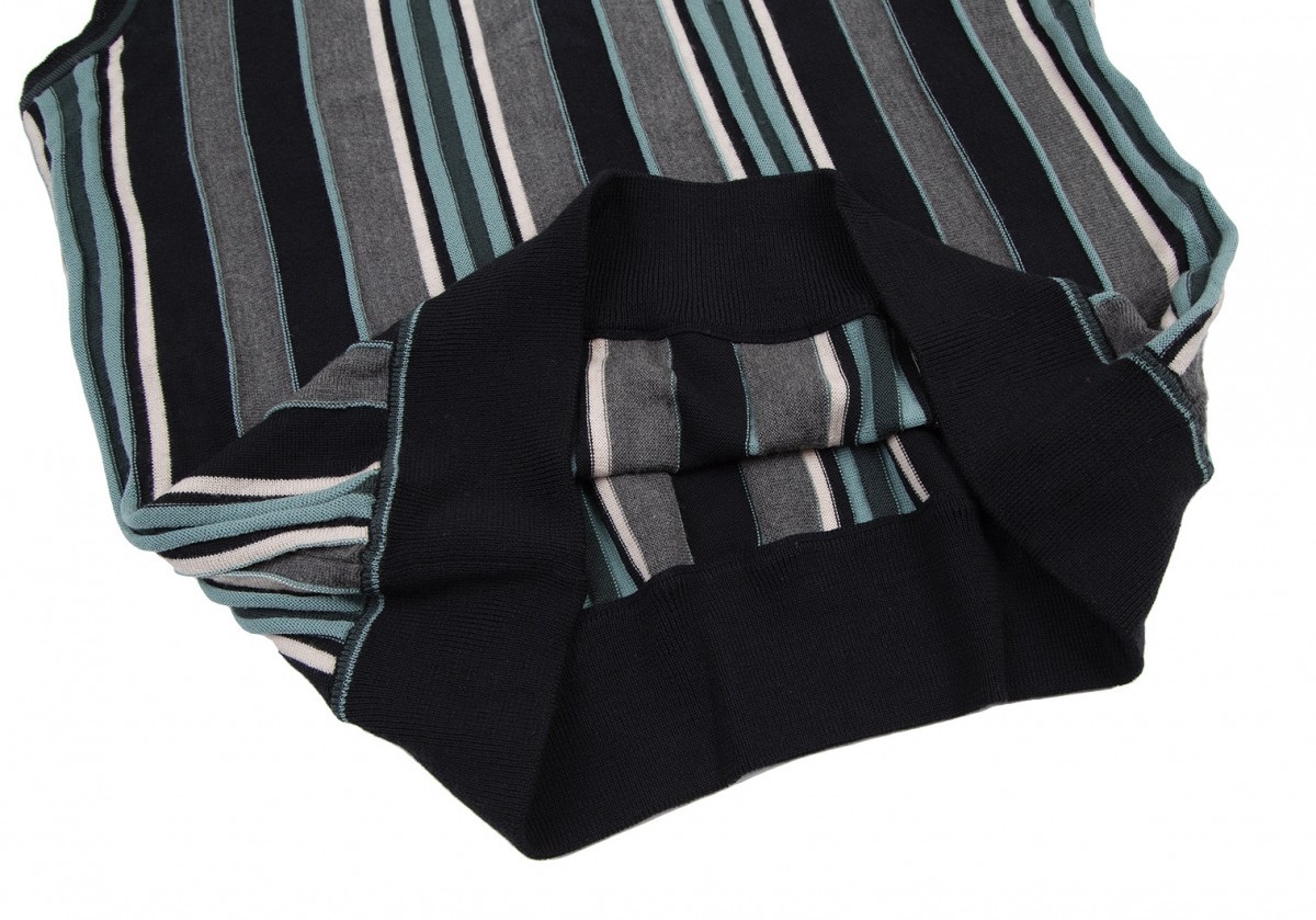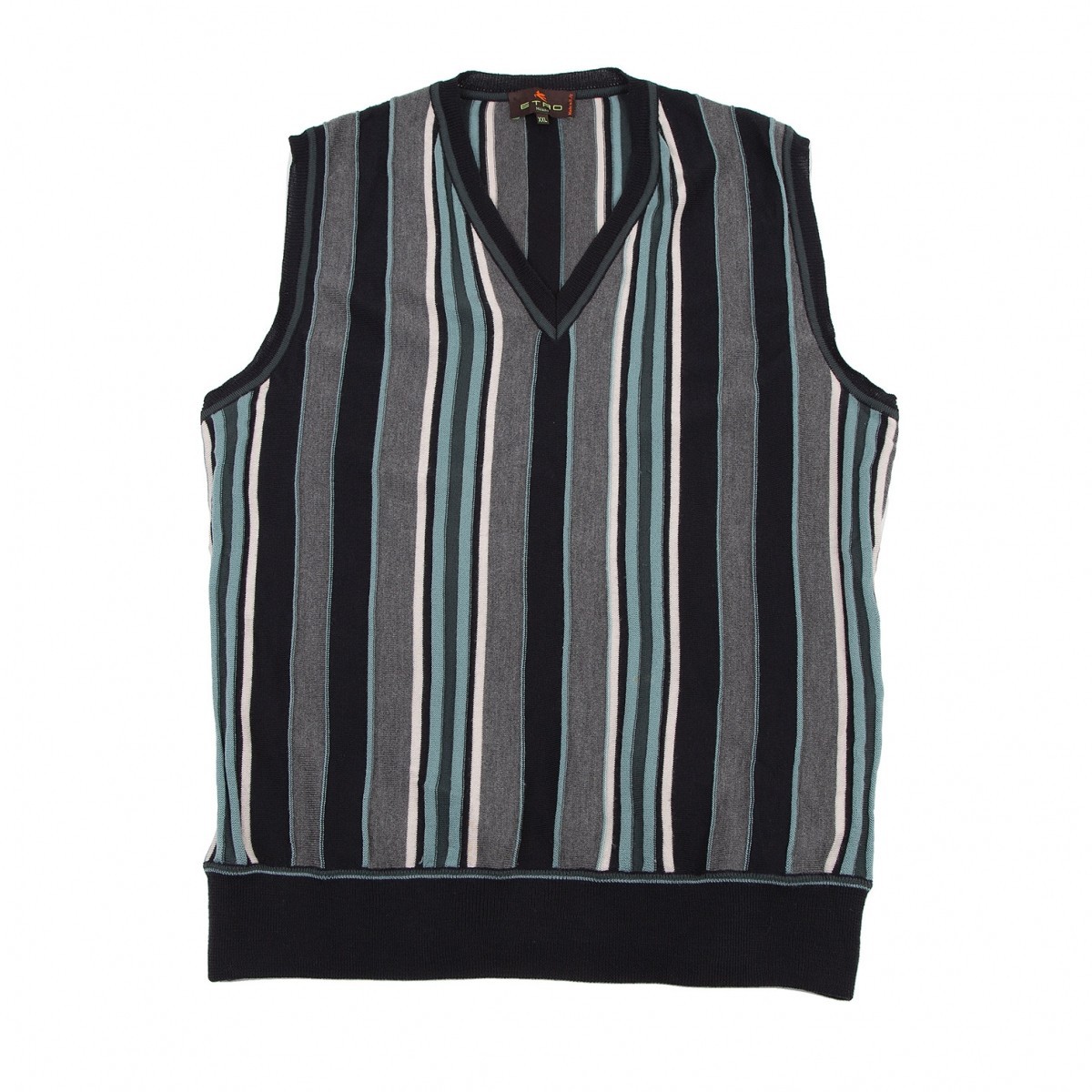 | エトロETRO ウールストライプVネックニットベスト グレー紺XXL |