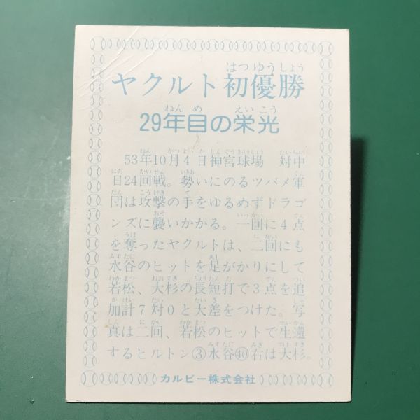 1978年 カルビー プロ野球カード 78年 ヤクルト初優勝 29年目の栄光 ヒルトン・水谷・大杉   【管理244】
