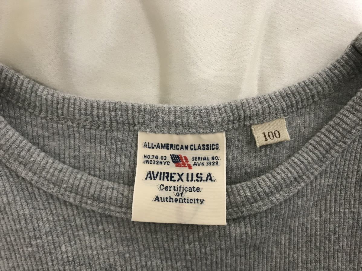 商品名:本物アヴィレックスAVIREXコットンワッフル半袖Tシャツキッズ子供メンズアメカジサーフミリタリービジネススーツグレー100
