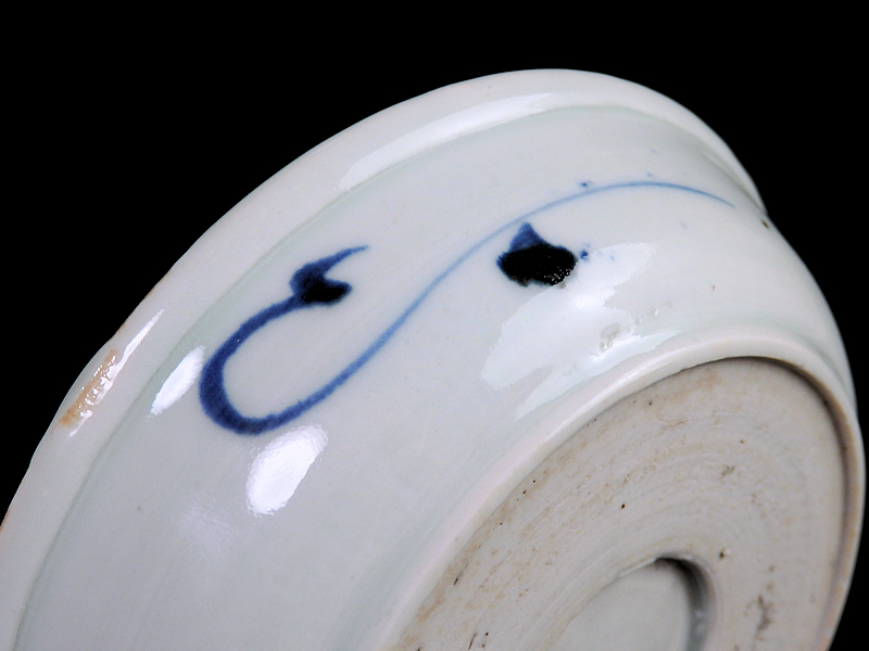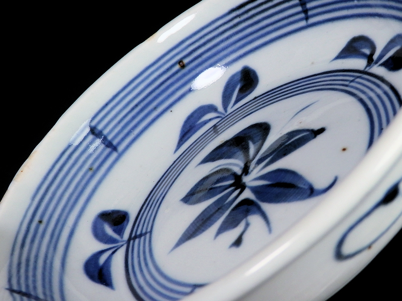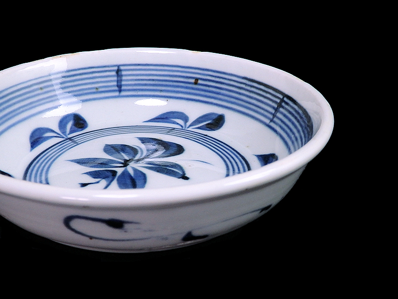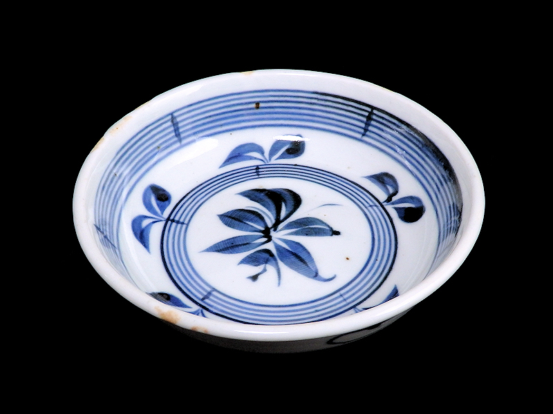 ★華心★ CIe-mS くらわんか 染付 葉紋に輪線の図 膾皿 春寒鉢