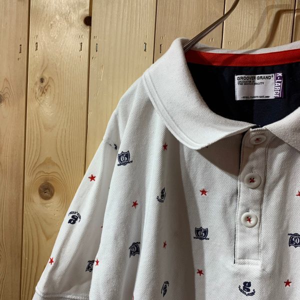 【KY382】GROOVER GRAND ポロシャツ ホワイト メンズ XL ポス