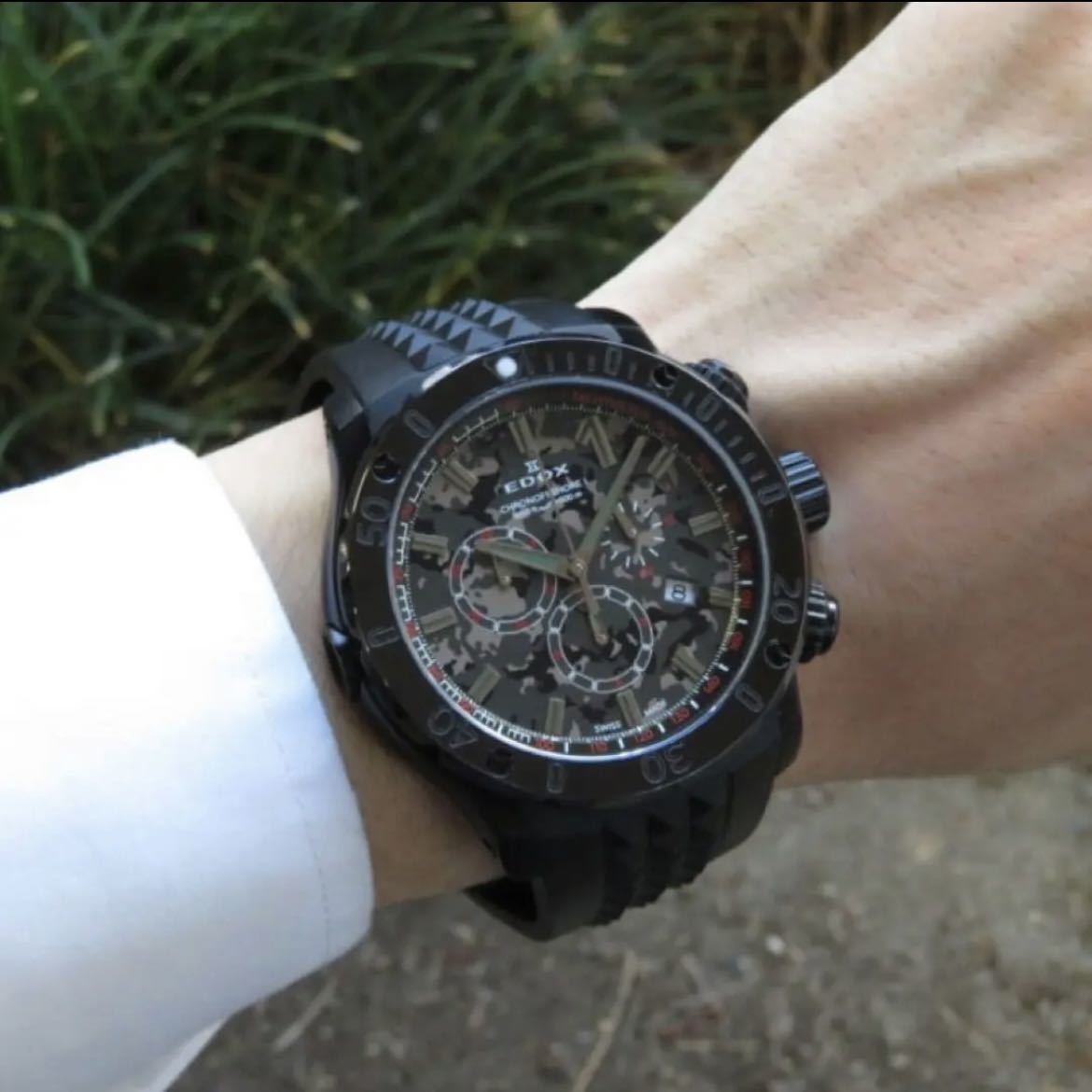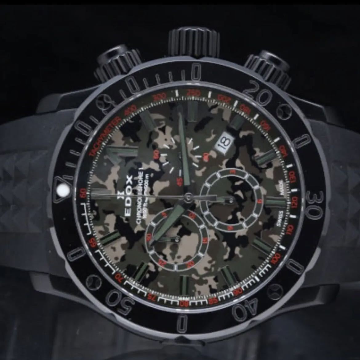 エドックス初の迷彩(カモフラージュ)柄を文字盤に採用し、ミリタリーテイストなモデル。