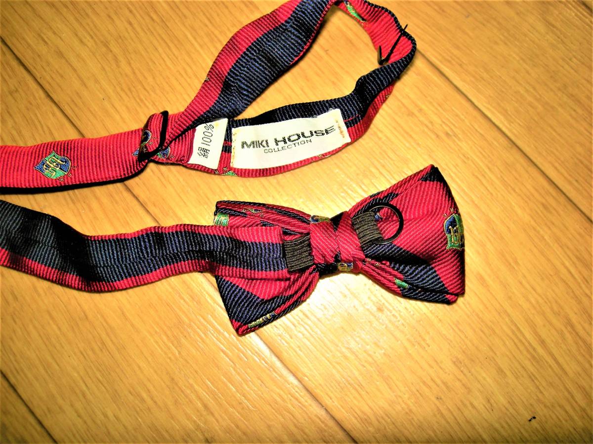 MIKI HOUSE ミキハウス 美品 蝶ネクタイ ボウタイ 定番 レジメンタルストライプ+小紋プリント 絹 シルク100%