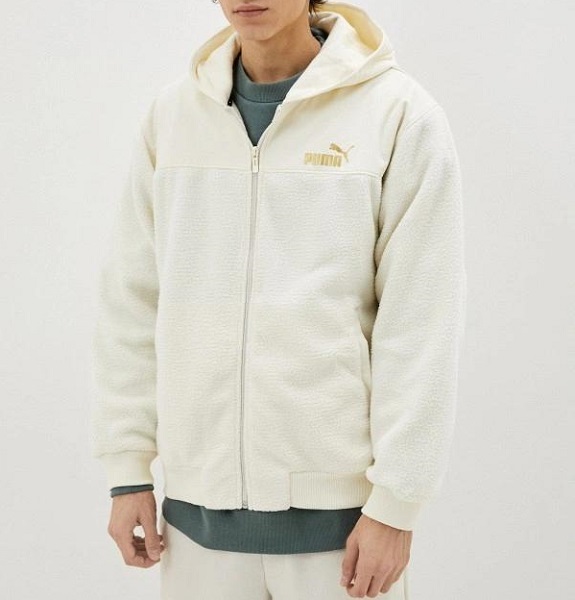 プーマ フード付き ボアジャケット USサイズS 日本サイズM相当 ホワイト 白 フルジップ フーディー パーカー 裏フリース
