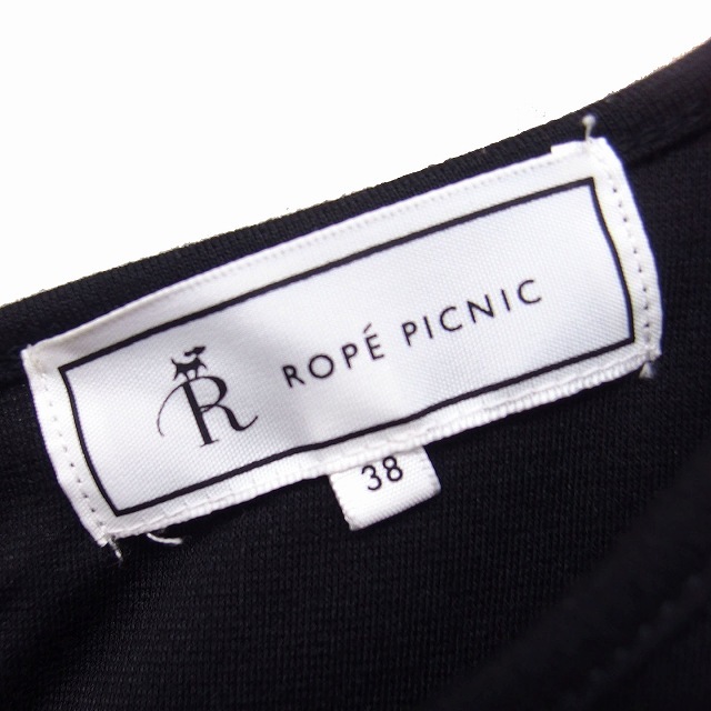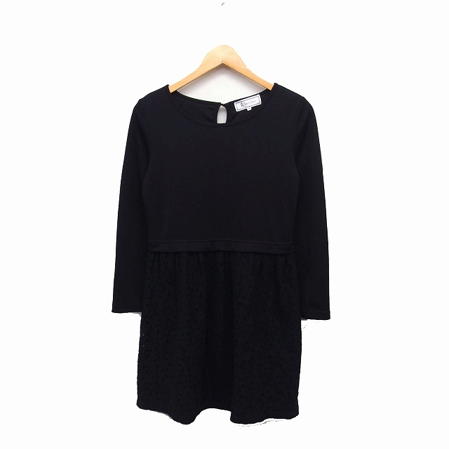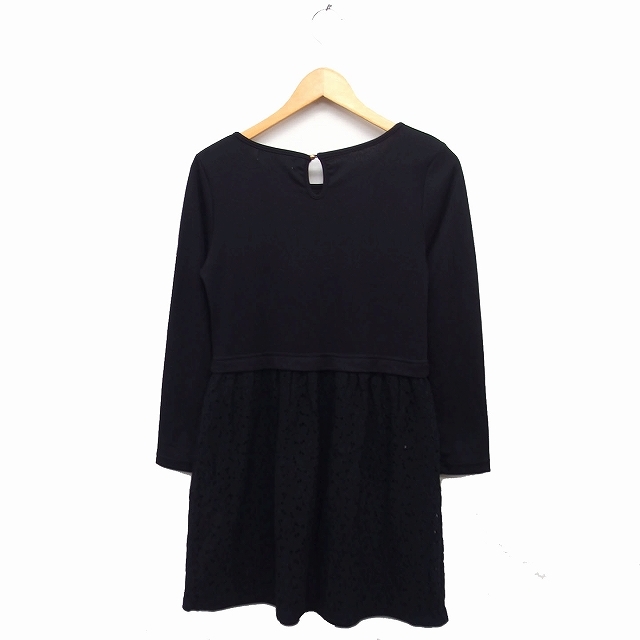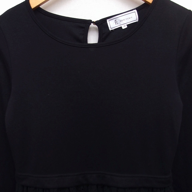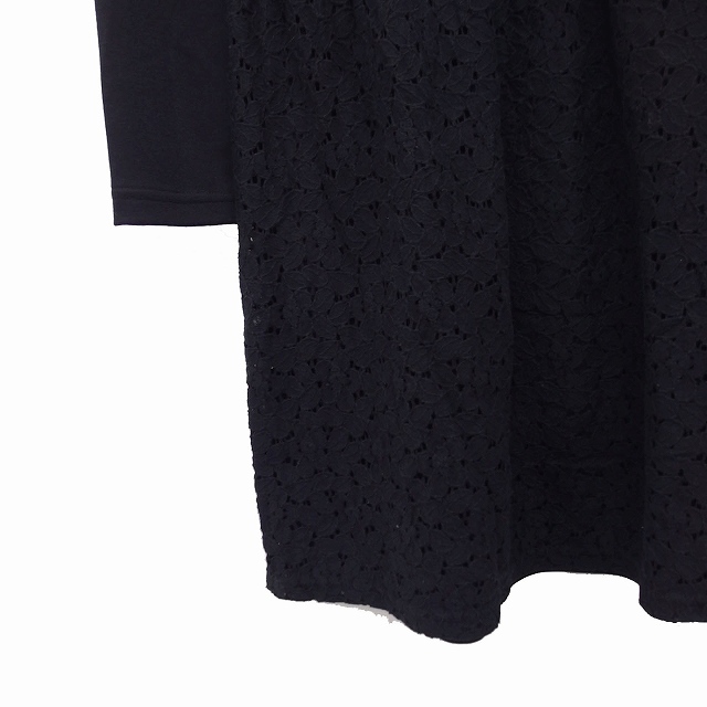 ロペピクニック ROPE Picnic 切替 フレア ワンピース ひざ丈 長袖 レース 無地 38 ブラック 黒 /FT3 レディース