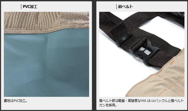 ベルトにはブラツキを抑える肩ベルトカンと軽量・高強度なYKKのLB-LVバックルを採用。