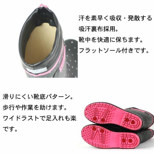 - ・吸汗裏布使用 ・吸汗フラットインソール付 ・スパッツ(カバー)付 ・滑りにくい靴底採用 素材ゴム (21cmの数値) 高さ30cm 幅8cm ワイズEE 重さ(片足)500g 筒内周33cm