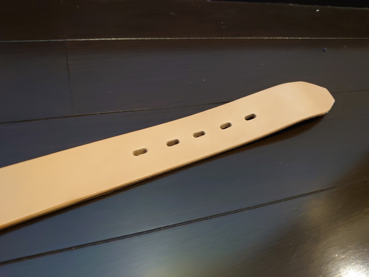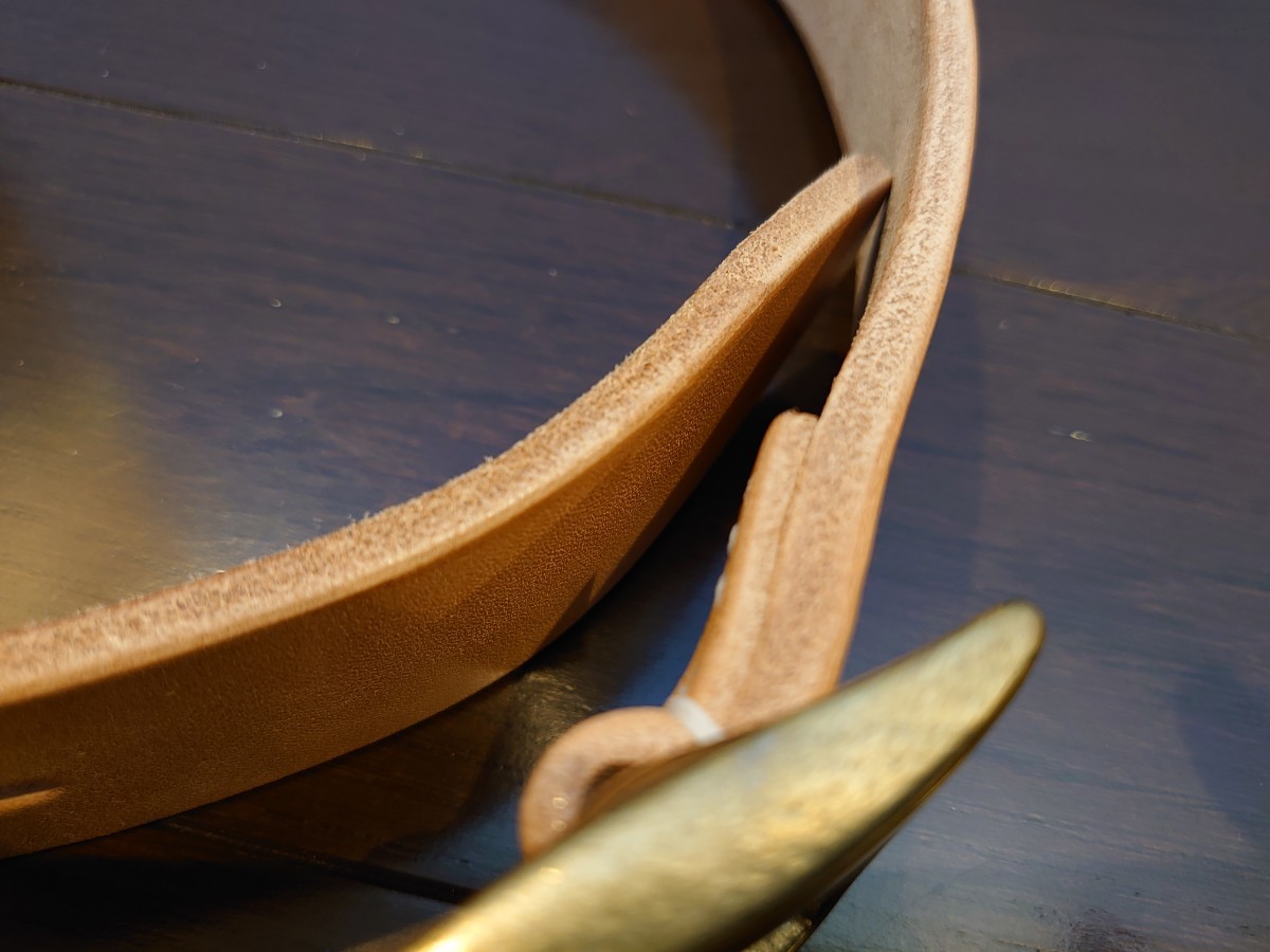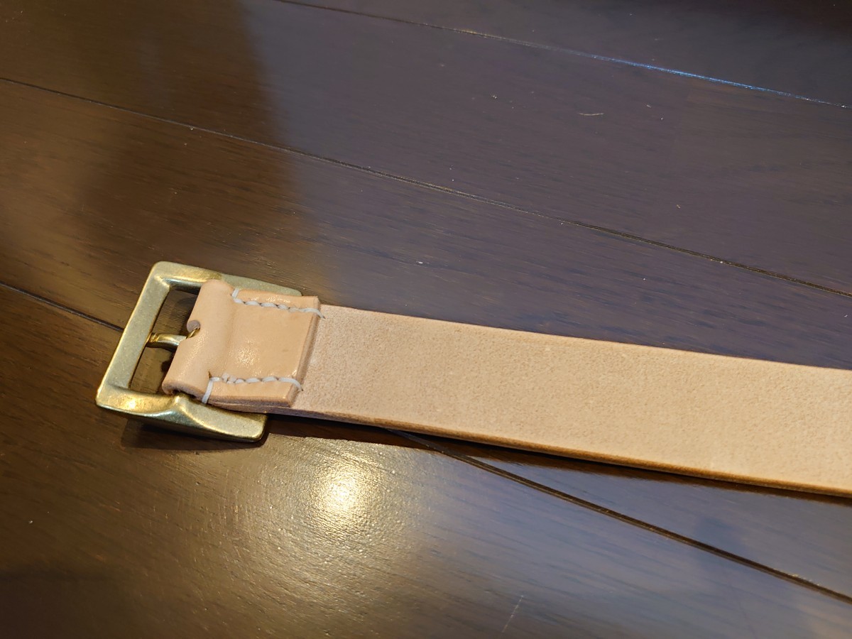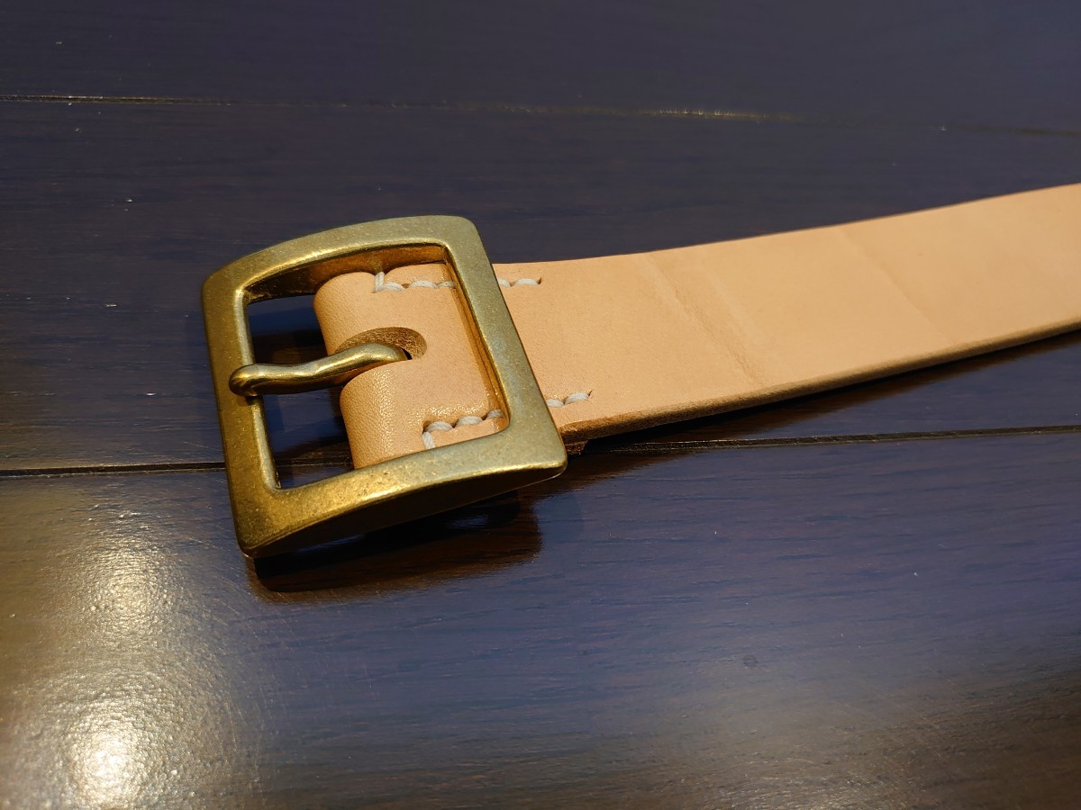 一生モノになりそうな素晴らしいベンズレザーのベルトです。試着のみの未使用品です。良すぎて使う気が引けるため出品します。まだオイルも塗っていません。オイルを塗り使用していくと素晴らしい味を出していくと思います。かなり厚みがありしっかりしています。天然皮革で革の表情があります。サイズは実寸でバックル部分の革の折返しから真ん中の穴までが75センチとして作られています。大体ですがウエスト70センチくらいの人に合うのではないかと思います。サイズ含め返品などはできませんのでご了承下さい。苦情返品なしでお願いいたします。