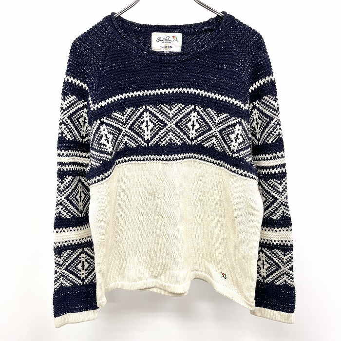 | 商品タイトル | Arnold Palmer - 2 レディース ニット セーター ノルディック 長袖 アクリル×ナイロン×毛 ネイビー×アイボリー系(ラメ糸:シルバー) 紺 |