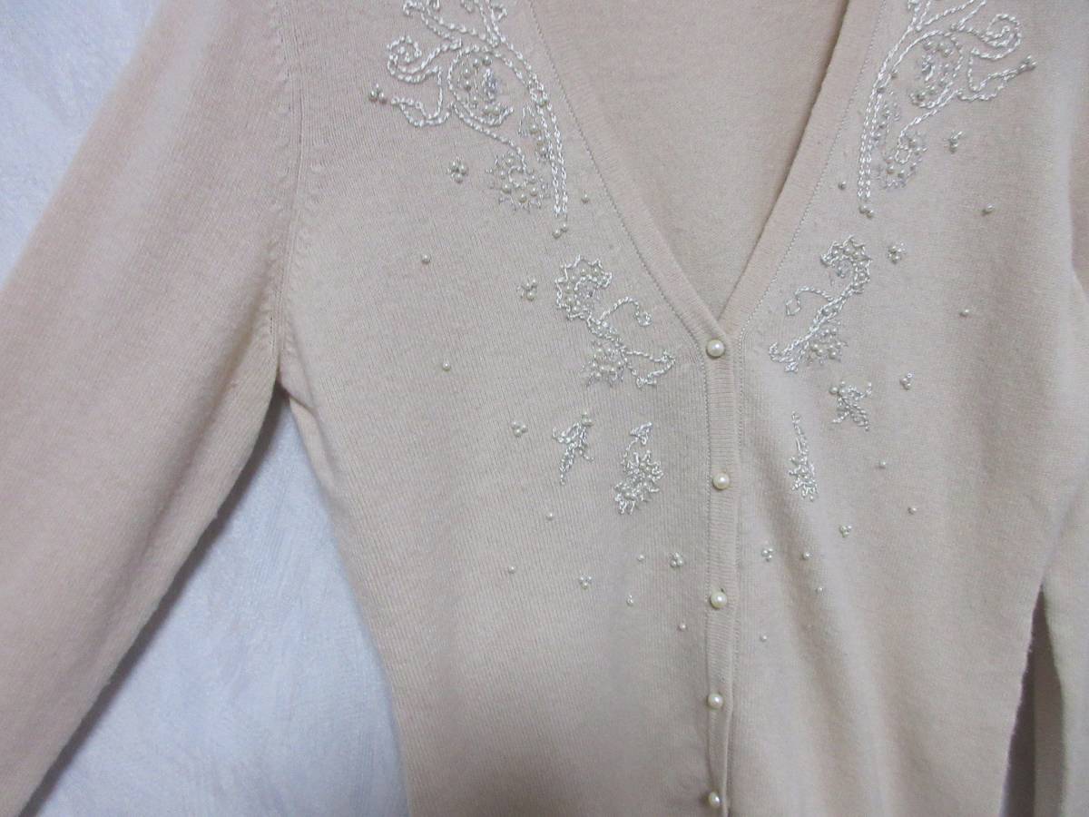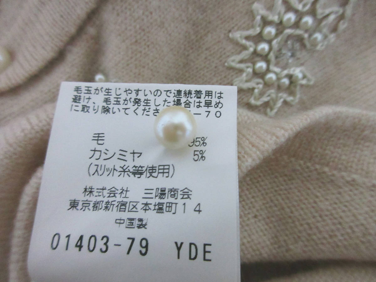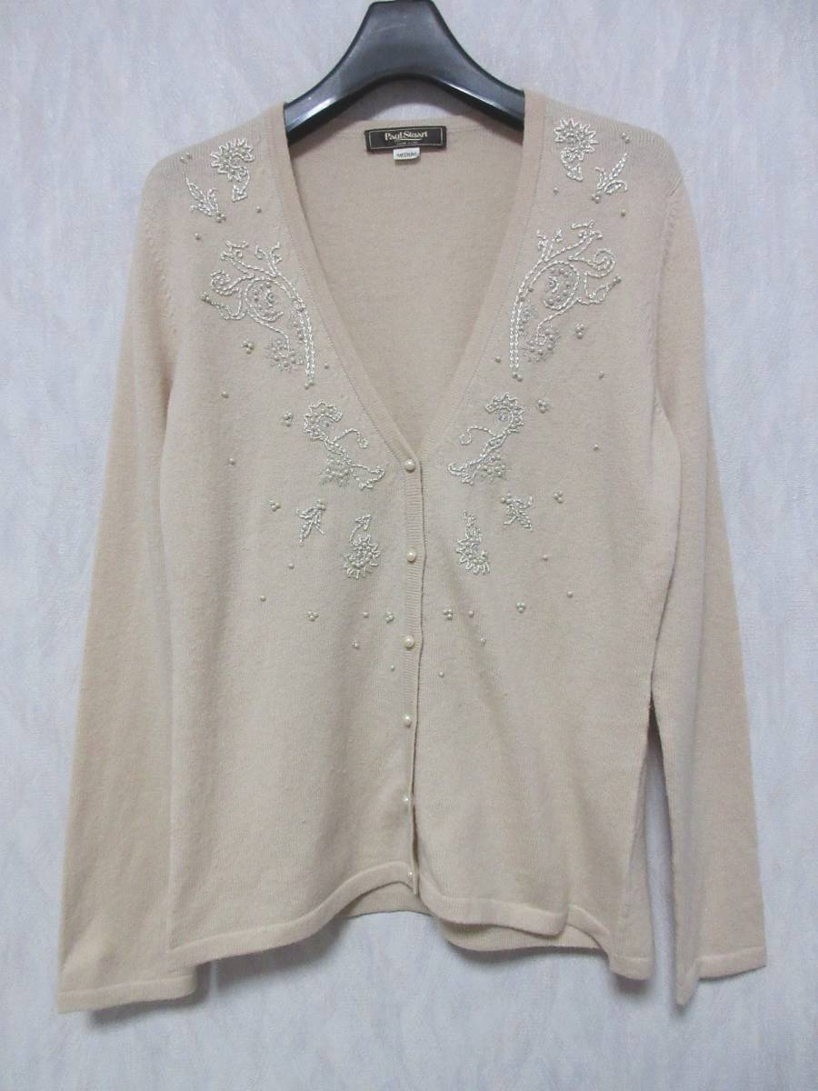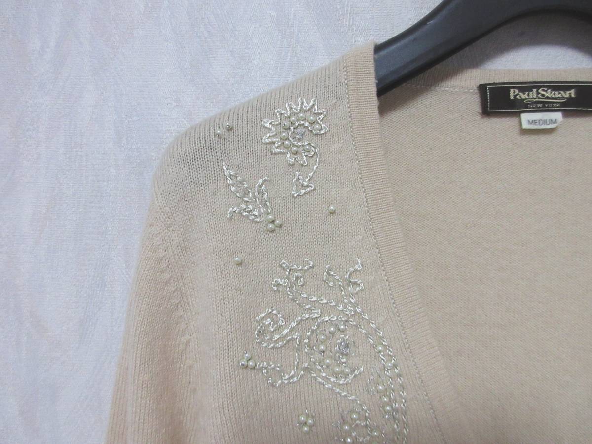 ポールスチュアート PAUL STUART パールビジュー ニット カーディガン ベージュ M irmri 亥3218