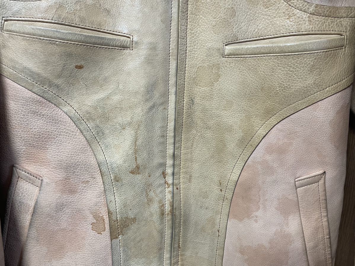 袖口のレザーの折り返し部にダメージあり(1箇所穴あきあり)