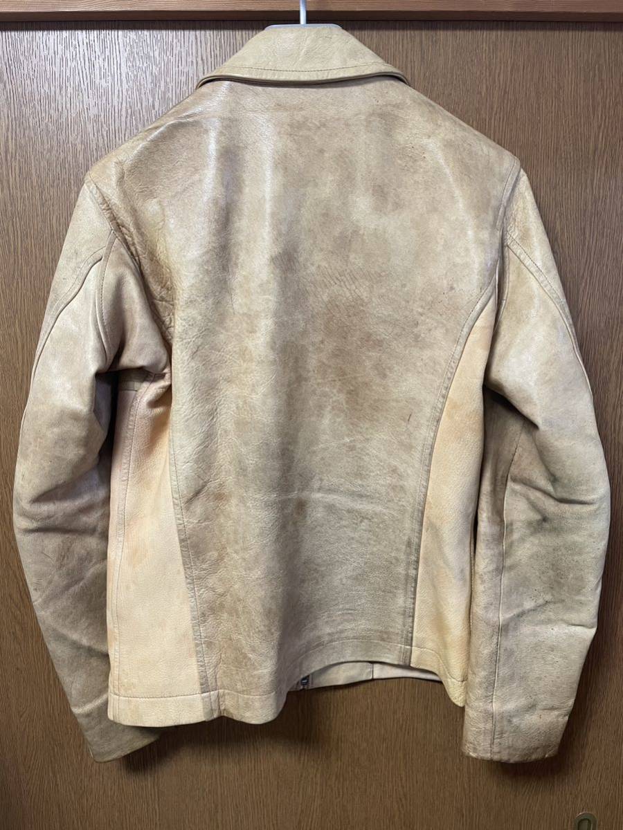 (全体的にエイジングしており当初よりも色が濃くなっていますが、前身頃などにある一見シミやヨゴレに見える色むらや着色は新品時からビンテージ加工として着色されていたものです)