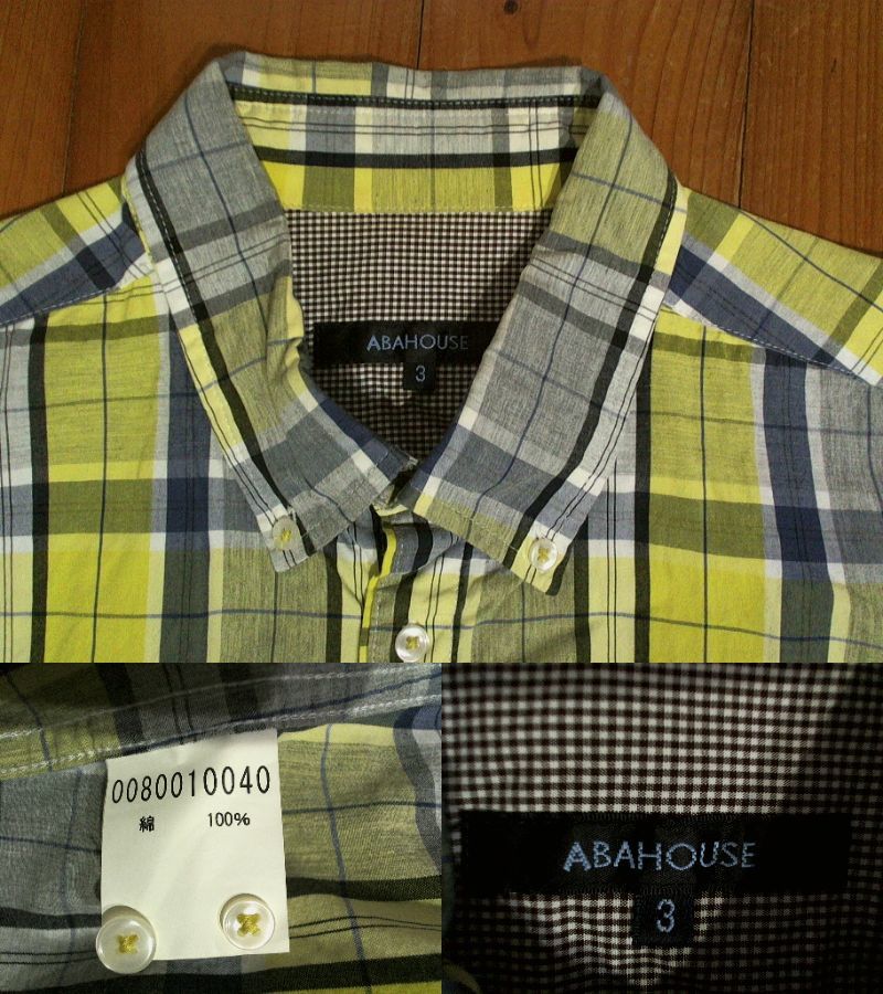 | ☆美品☆アバハウス【ABAHOUSE】ボタンダウン 7分袖シャツ コットンシャツ チェックシャツ 3 濃紺 黄緑 白 | |