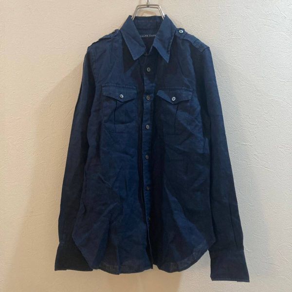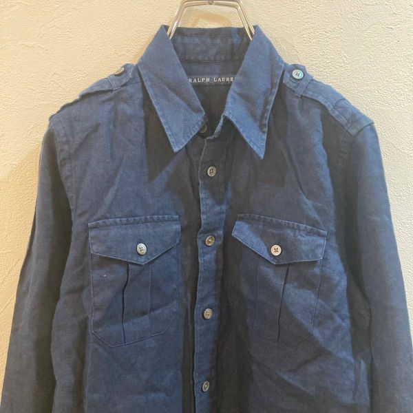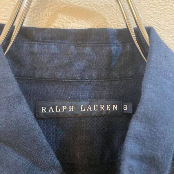 商品: RALPH LAUREN/ラルフローレン 長袖 シャツ ネイビー 紺 麻100% レディース 9号