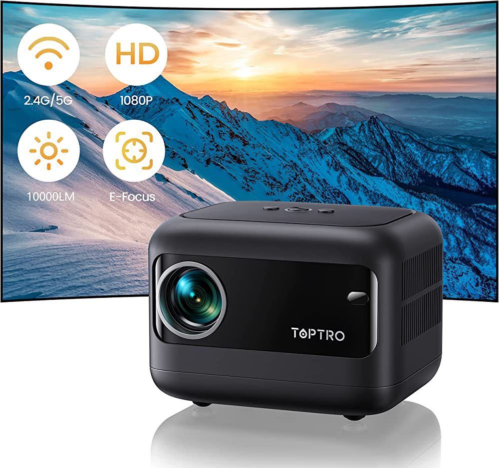 TOPTRO プロジェクター 超小型 5G WiFiプロジェクター 【電動フォーカス 垂直台形補正】 MINIプロジェクター モバイルプロジェクター1080PフルHD 4K対応 10000LM 一人暮らし プロジェクター Bluetooth5.1 短焦点投影 50%ズーム ホームシアター プロジェクター 内蔵HiFiスピーカー ホームプロジェクター 天井/三脚対応 リモコン付属 3年保証 TR25