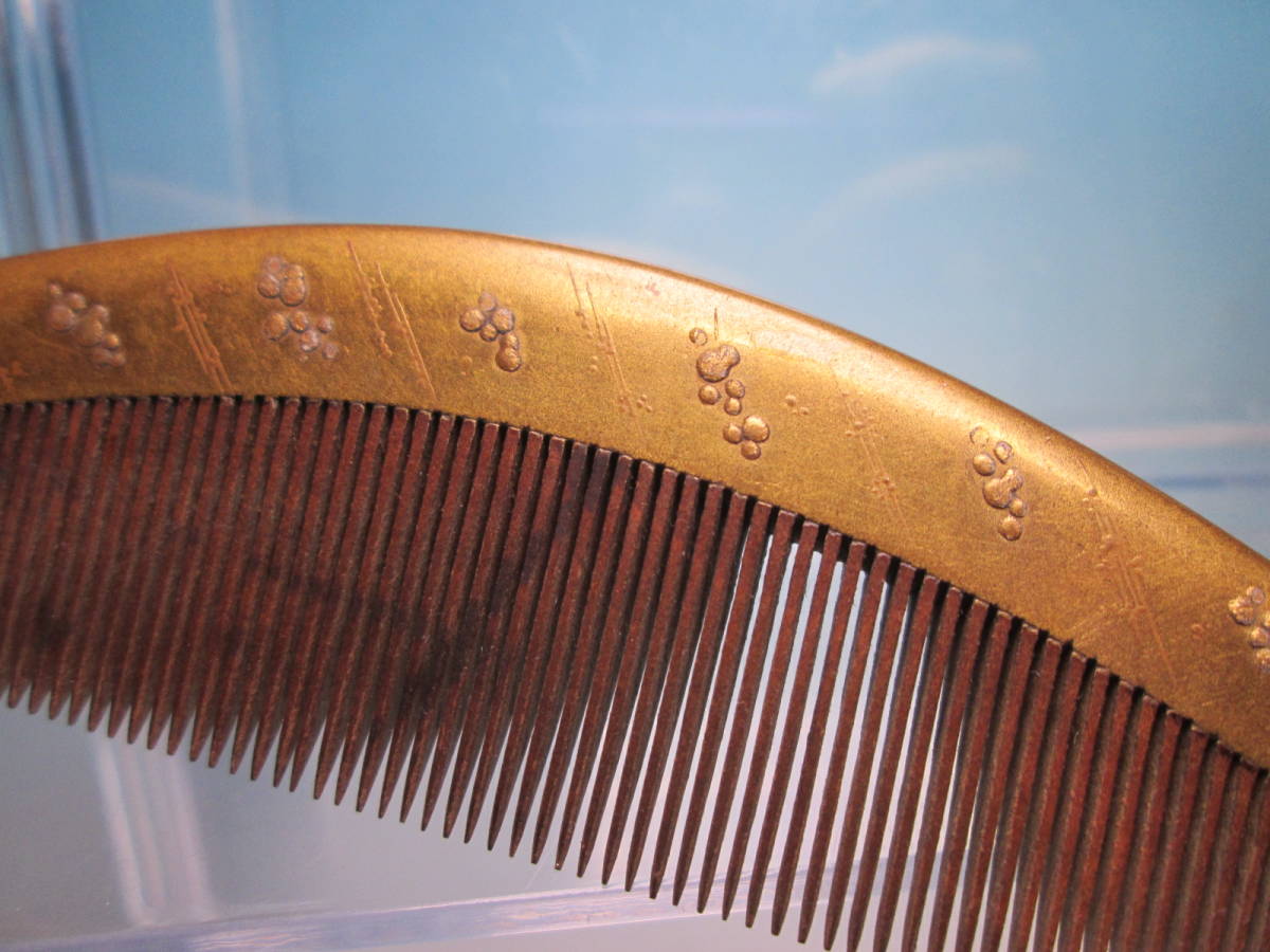 ☆アンティーク・明治時代 金蒔絵 こぼれ梅文の櫛