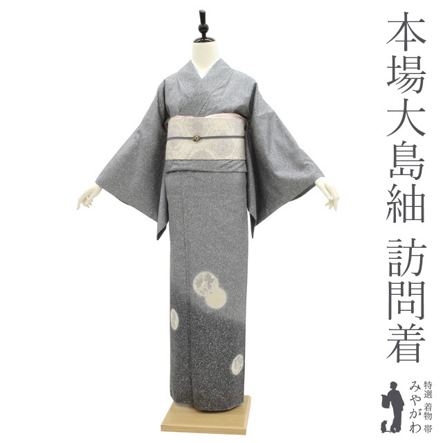 【中古】 本場大島紬織込 訪問着 袷 着物 引箔大島 正絹 絹 グレー ぼかし 撒き糊散らし 雪輪 草花 カジュアル ショッピング お食事 観劇など 美品 綺麗 販売 購入 リサイクル 中古品 仕立て上がり 身丈168 裄67 Lサイズ みやがわ sb12508